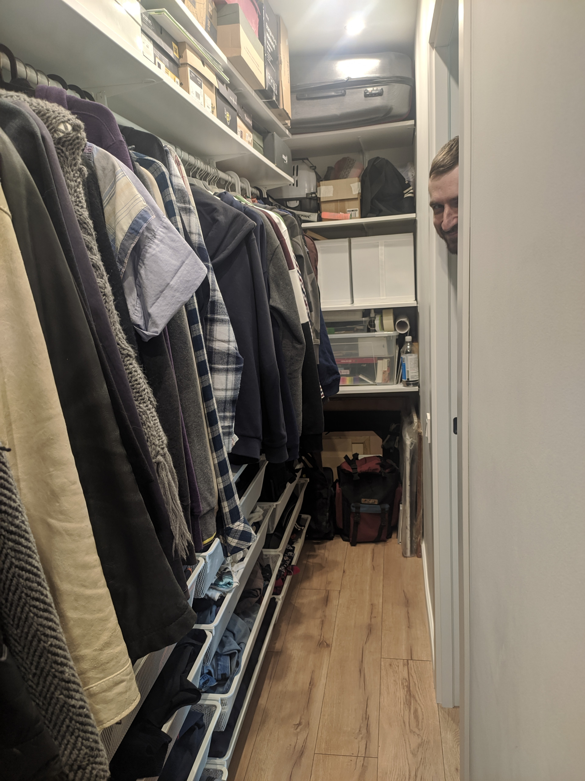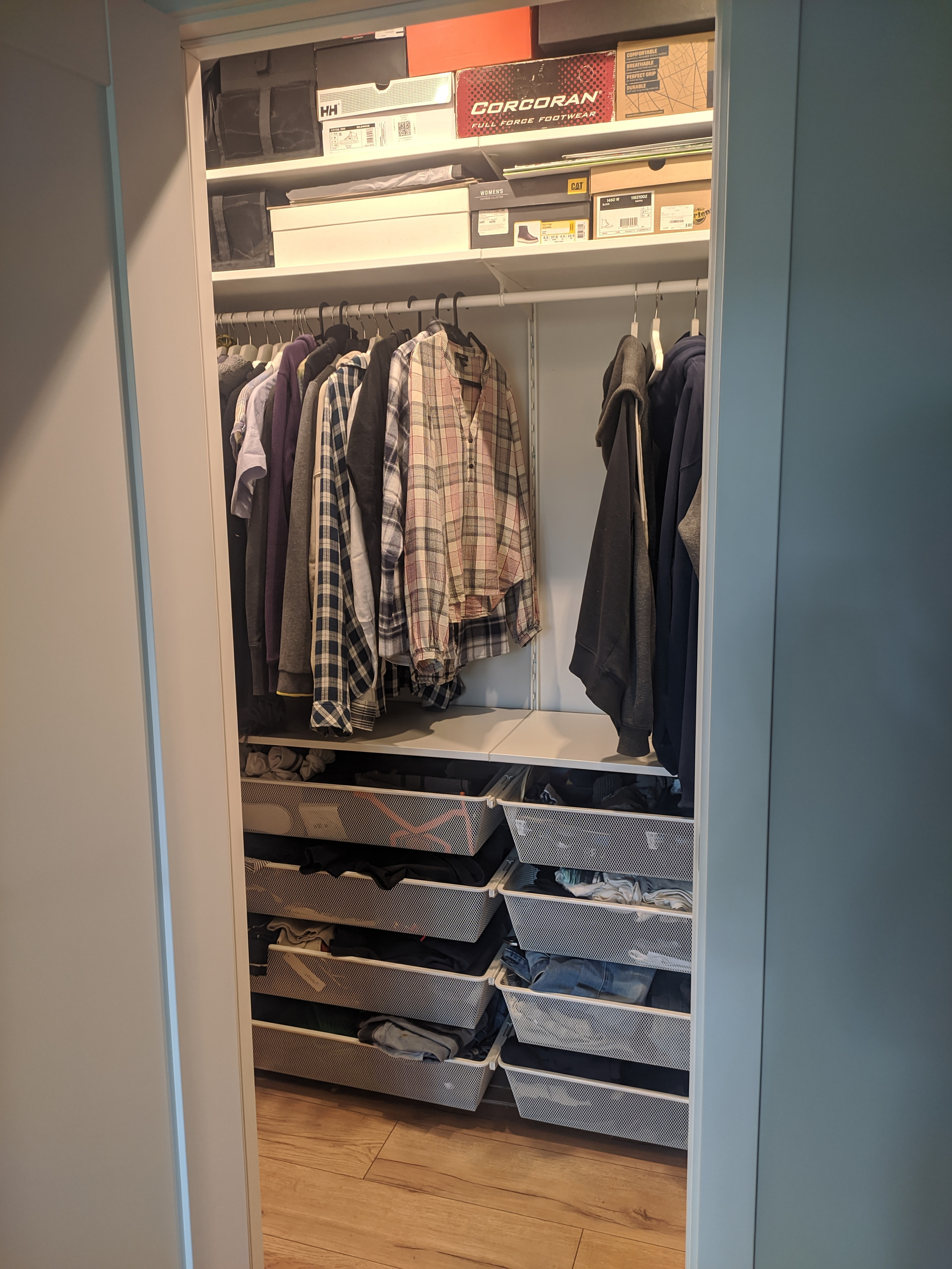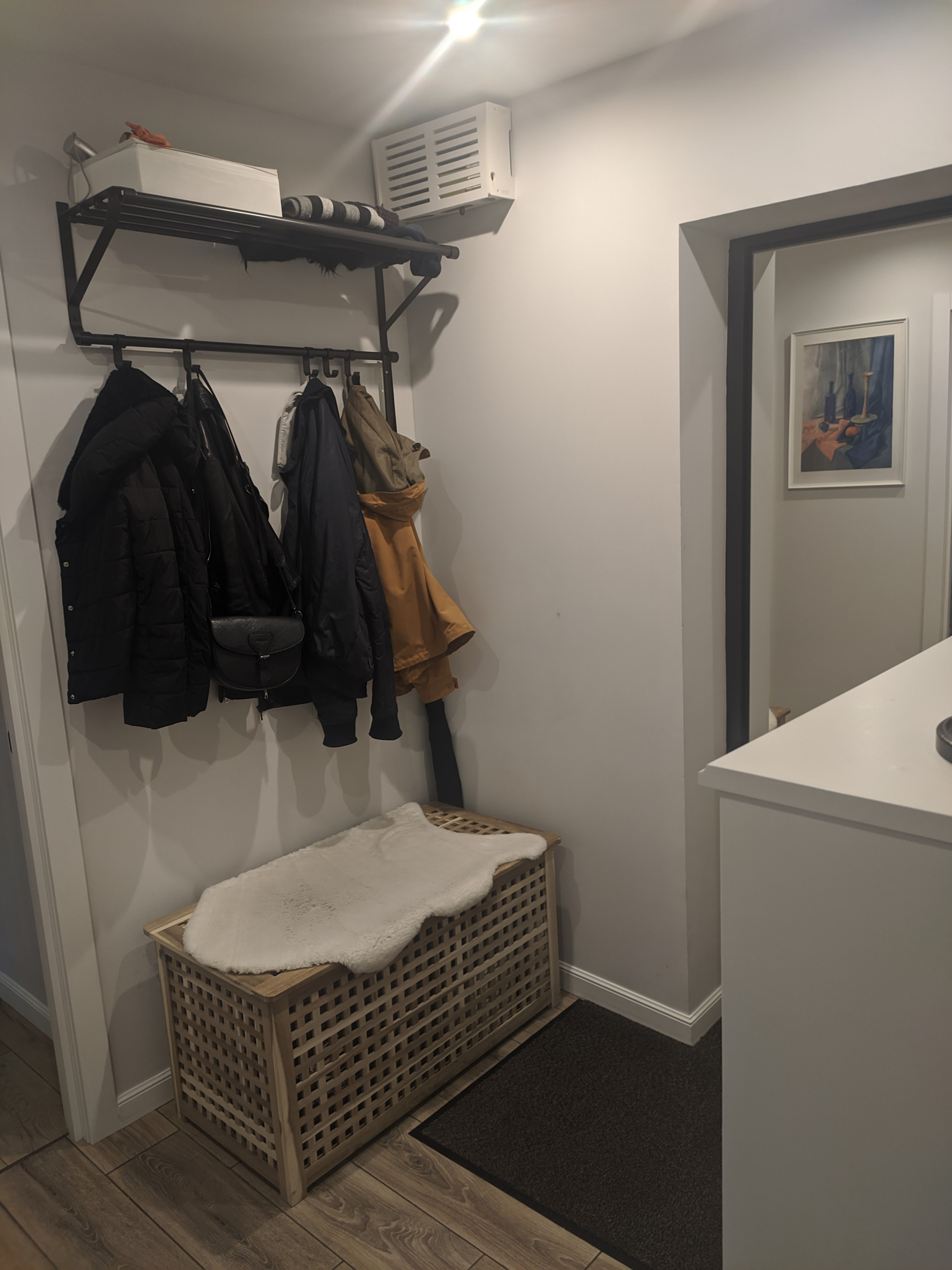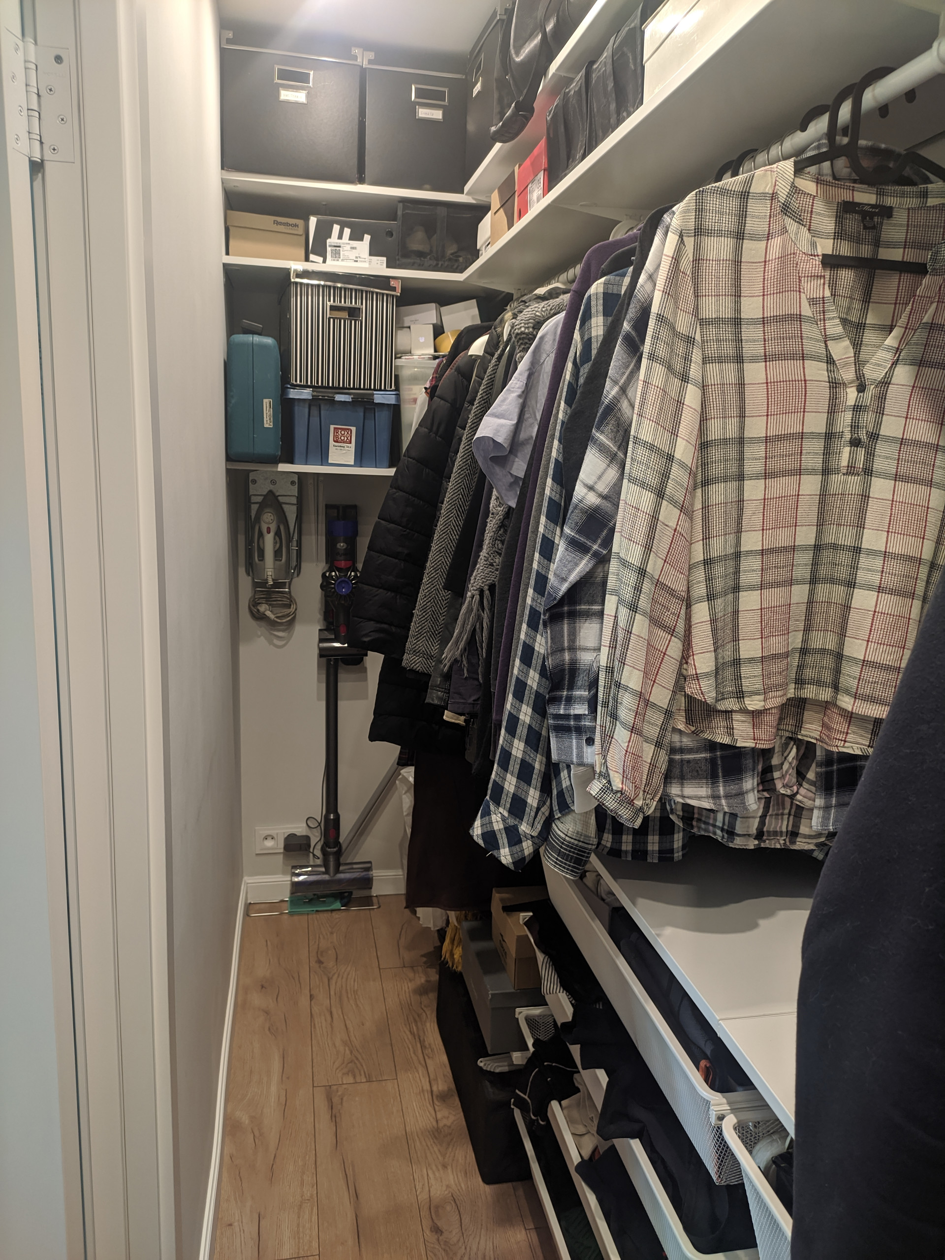Сделана очень удобная гардеробная комната для хранения вещей.