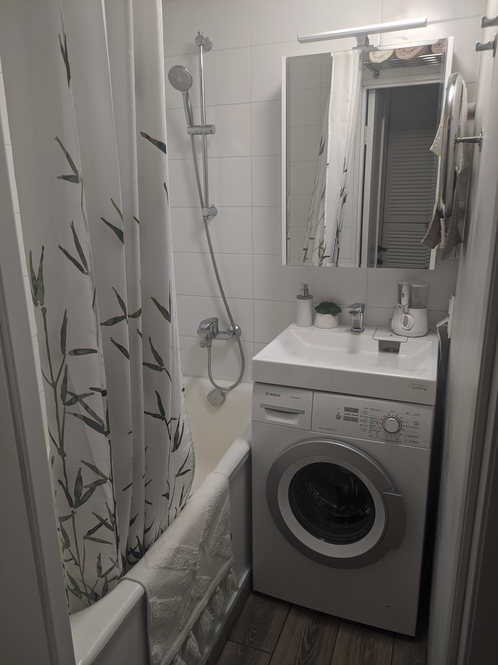 Вся сантехника новая от стояков. Мощный вытяжной вентилятор, можно управлять от Яндекс Алисы.