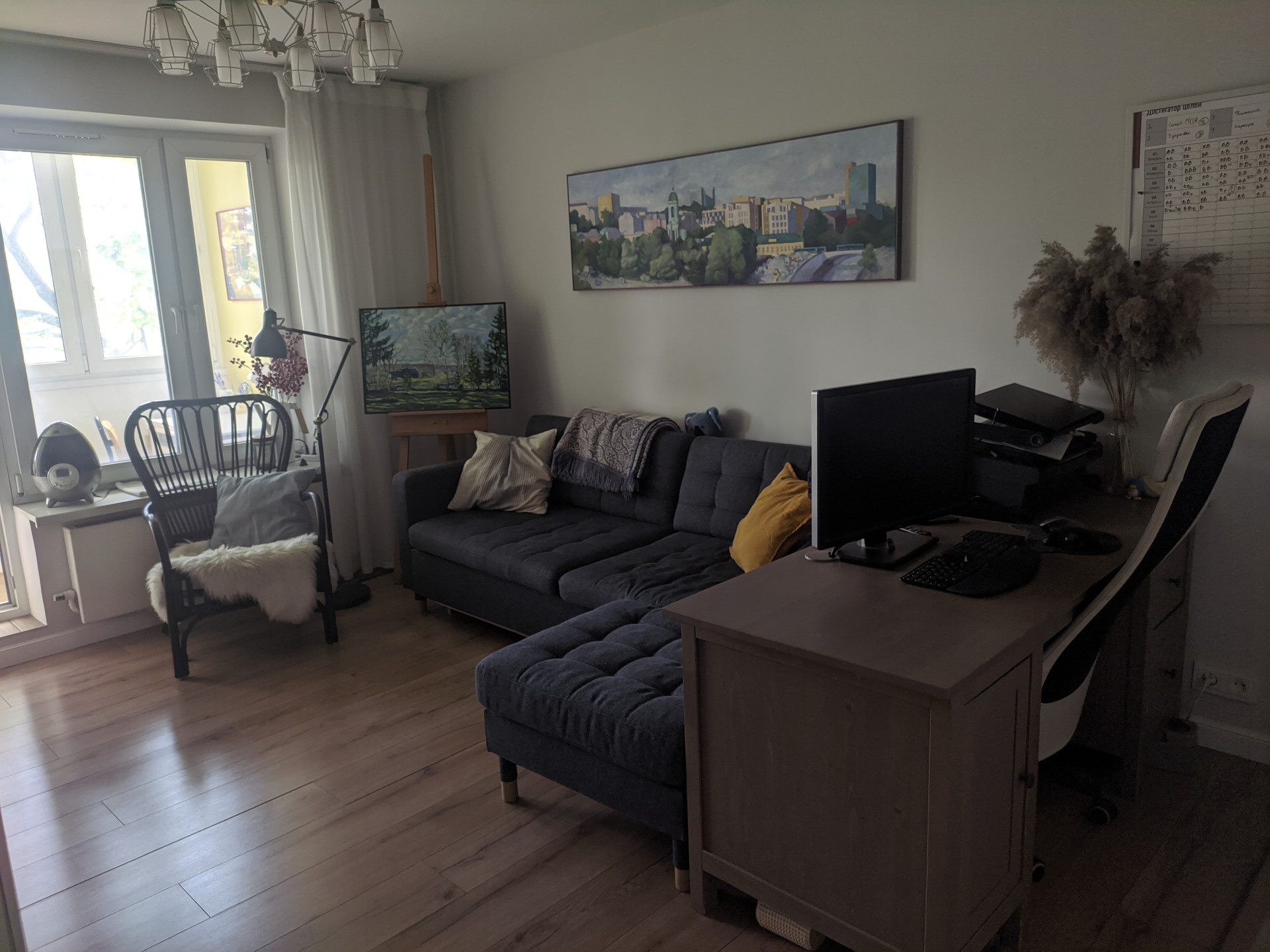 Ремонт делали для себя. Стены выровнены и покрашены. Потолок гипсокартон. Новая сантехника. Новая электрика. Пол выровнен по одному уровню. Утеплили балкон. Есть умный дом.