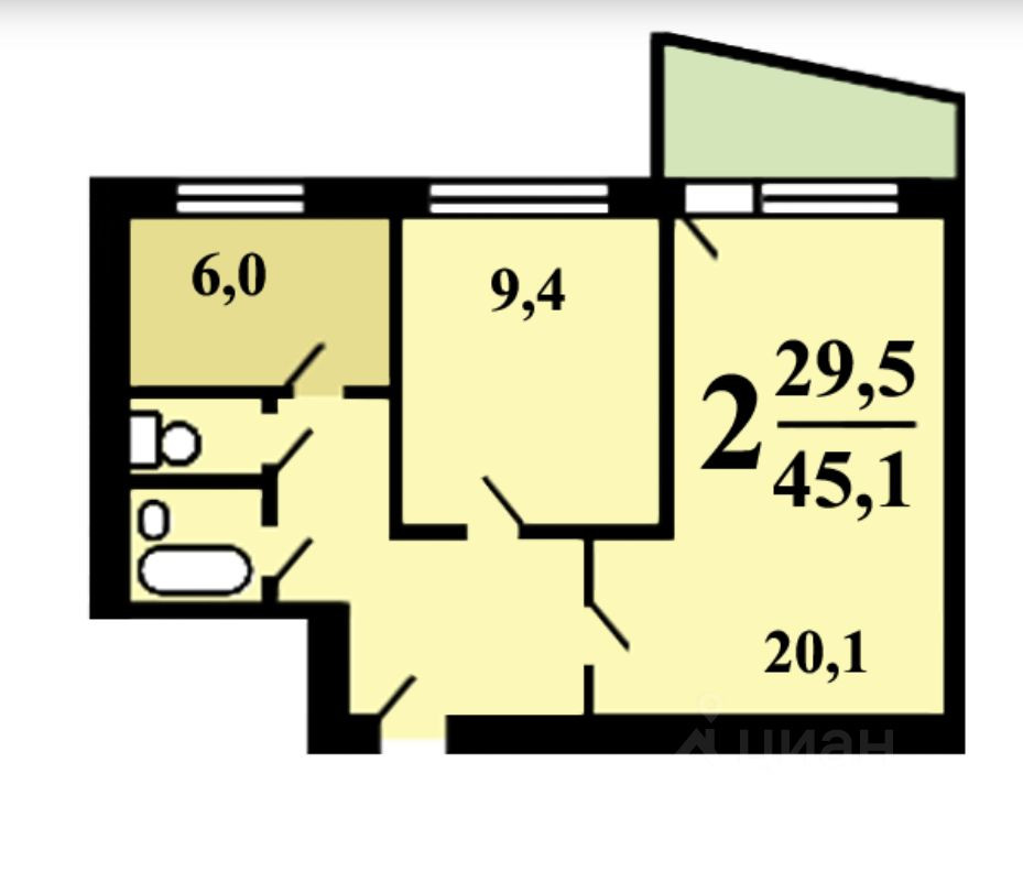 Жилая площадь 29.5 м2