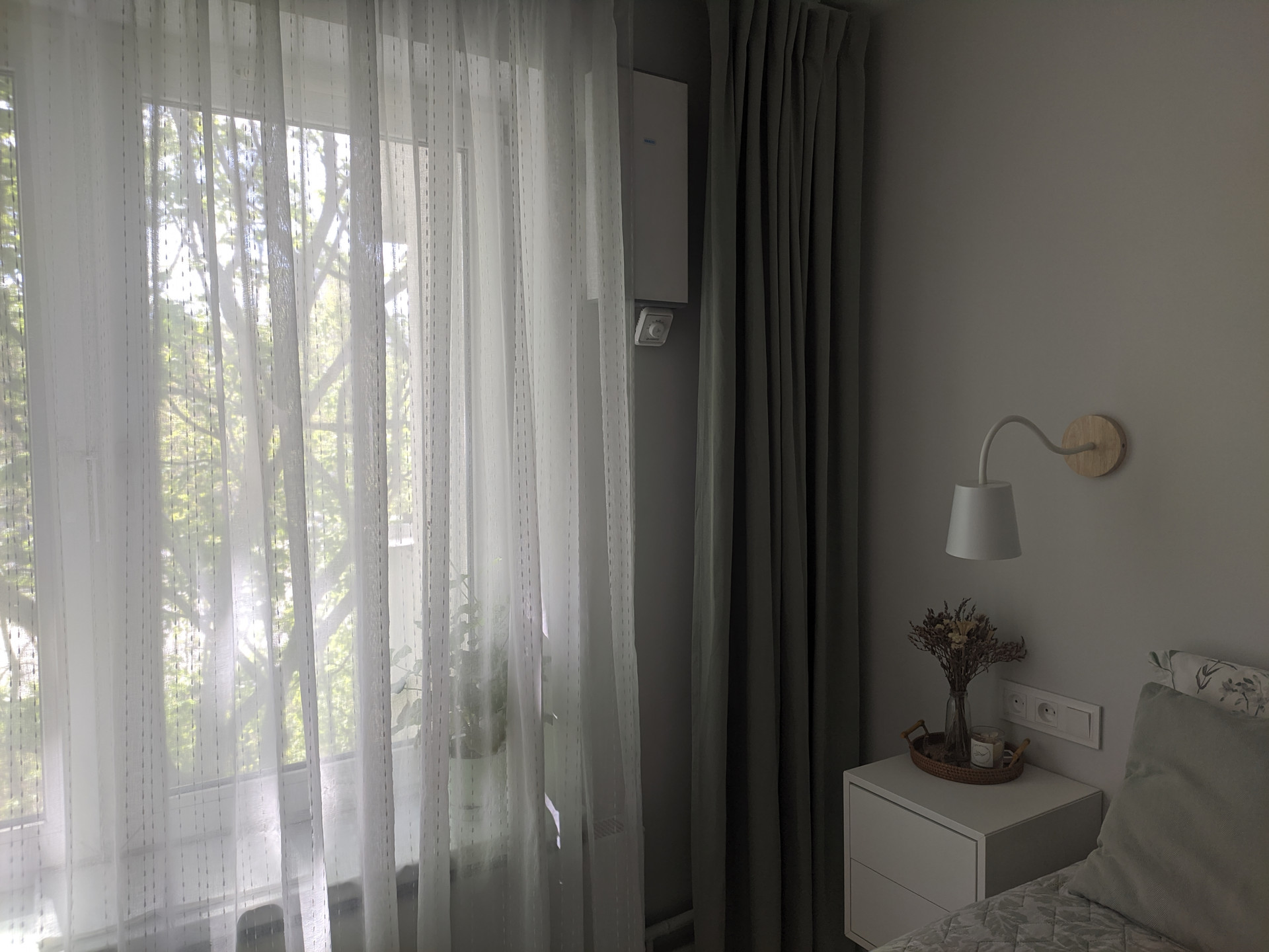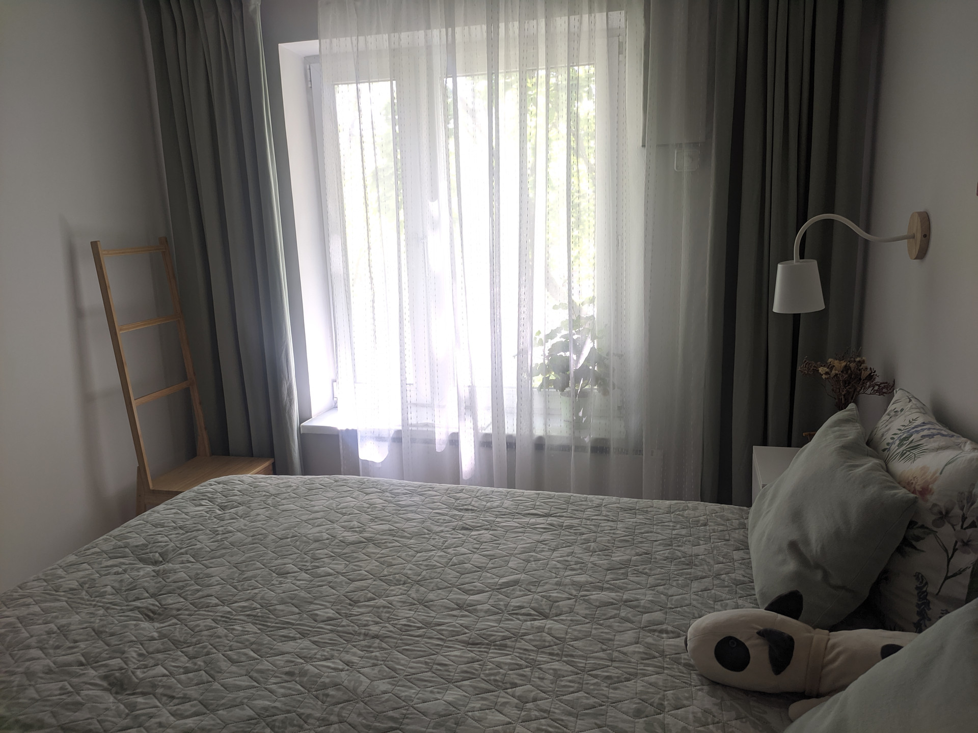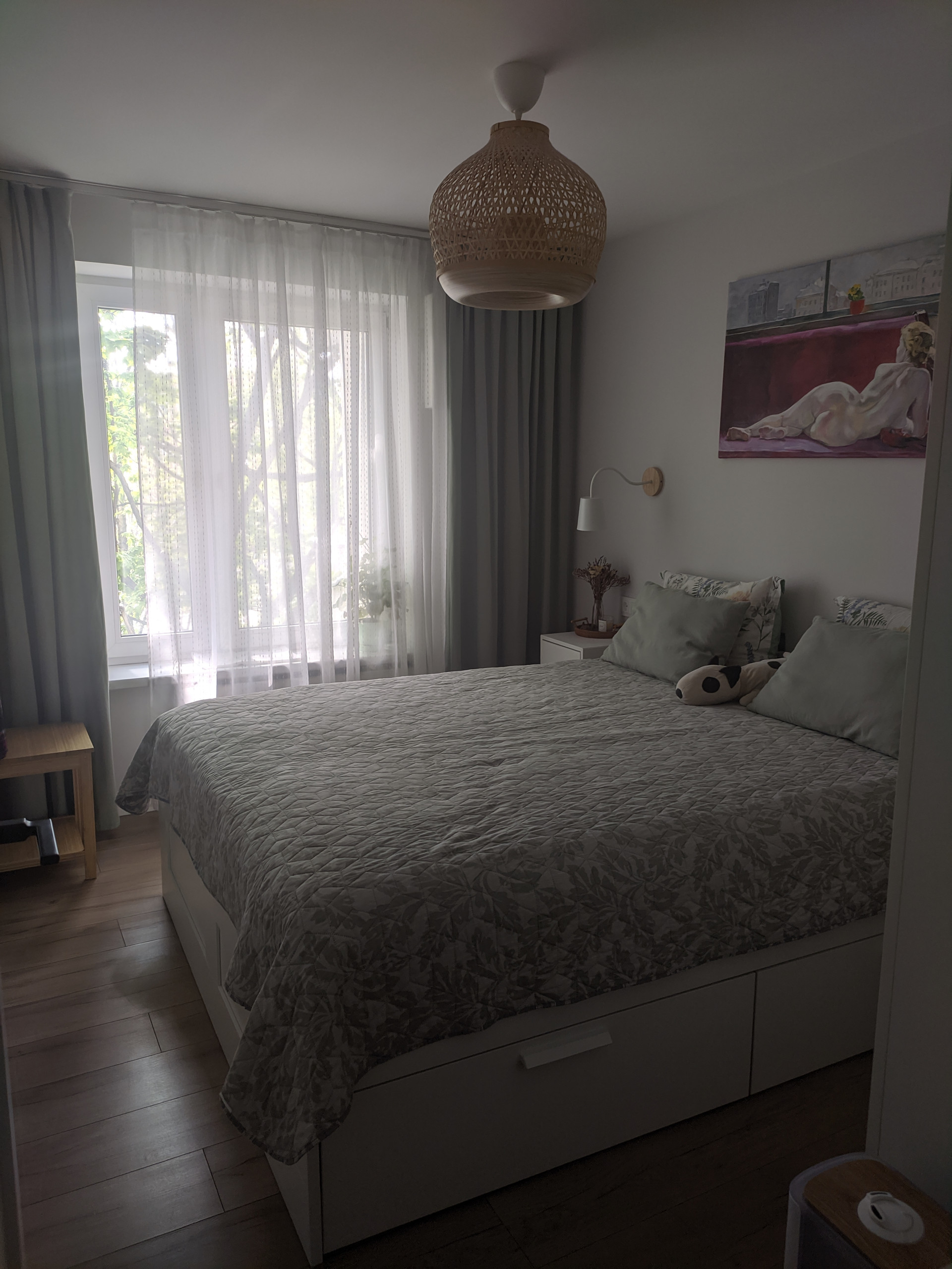 Тихая уютная спальня. Установлена приточная вентиляция с шумоподавлением, так что воздух всегда свежий, чистый и в комнате тихо.