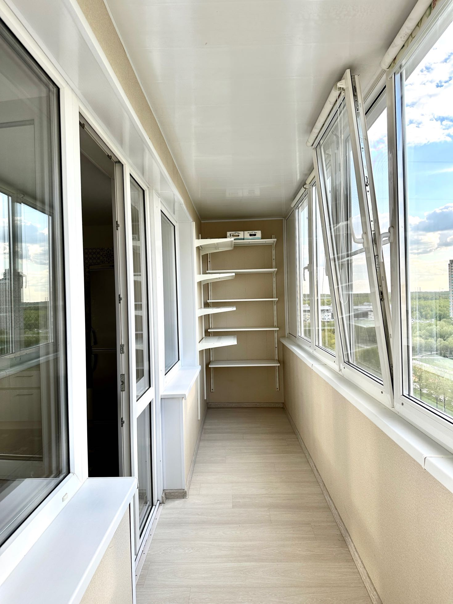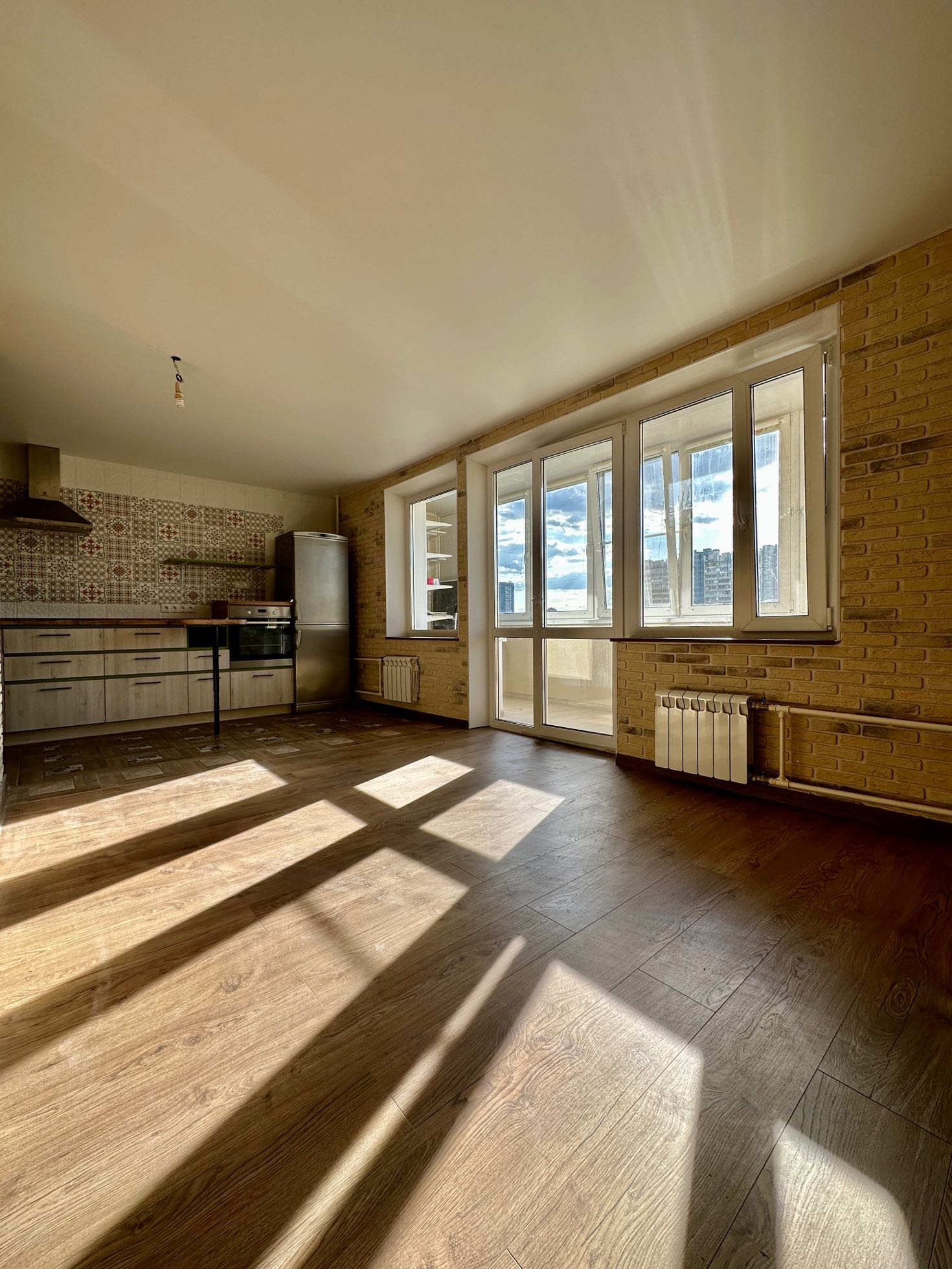 Квартира с современным ремонтом в теплых тонах с просторной прихожей, совмещенным санузлом с душем, шикарной лоджией и большой комнатой состоящей из зоны кухни - гостиной и камерной спальни в уютном уголке квартиры. Кухня оборудована варочной панелью, духовым шкафом, п/м машиной, вытяжкой, холодильником, стол барного вида. Квартра солнечная, на окнах есть жалюзи блэкаут. Из окон открывается шикарный вид на современный бульвар и восхитительные закаты.