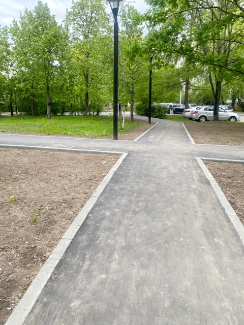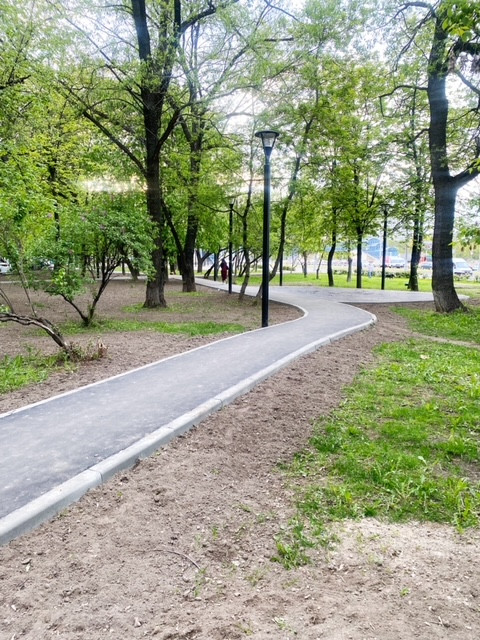 Дворовая территория: полностью облагорожена, сделаны дорожки для прогулок, район вокруг дома полностью утопает в зелени, множество парковочных мест перед домом и в округе, что сейчас не мало важно.