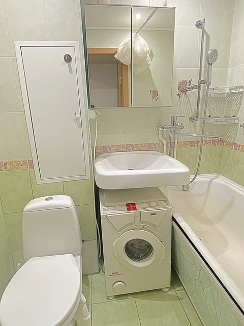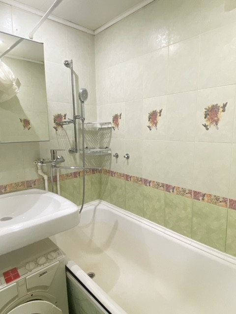 Планировка: общая площадь квартиры- 33,2кв.м., жилая-19,1кв.м., кухня-6,7кв.м., с/у совмещен, есть встроенный шкаф при входе в квартиру, окна пластиковые с панорамным видом на зеленый район, БАЛКОНА НЕТ, ОКНА ВО ДВОР(не на дорогу, а в тихий зеленый двор). Квартира светлая и уютная в жилом состоянии, на полу ламинат, ванна в кафельной плитке, счетчики установлены, сантехника в идеальном состоянии, мебель остается, высота потолков 2,7м. Чистый отремонтированный подъезд, мусоропровод заменен, запахов нет, лифт 1, доброжелательные соседи, тамбур на 2 квартиры. В доме проведен капитальный ремонт с заменой коммуникаций.
