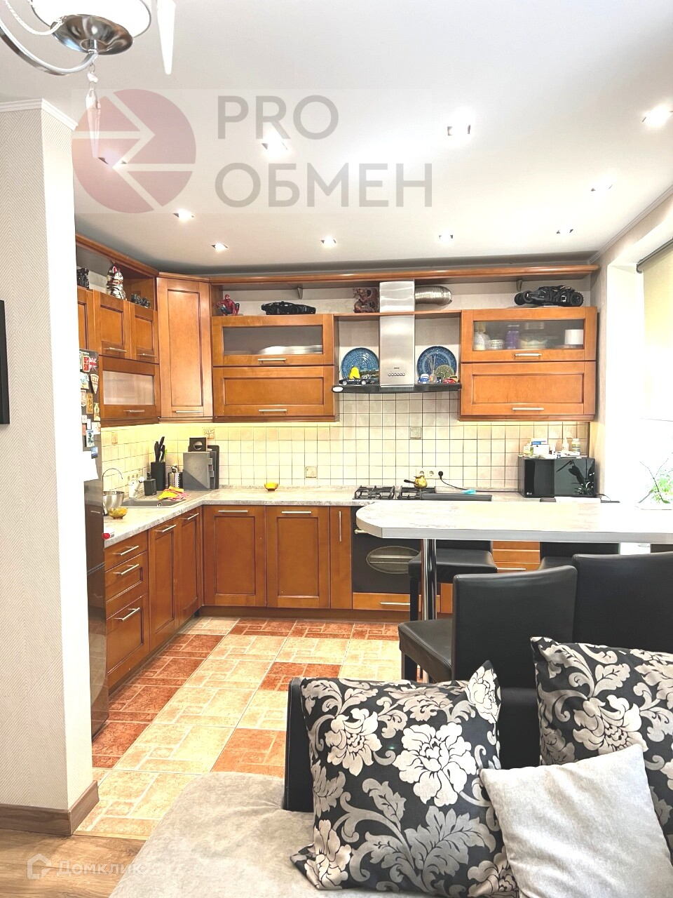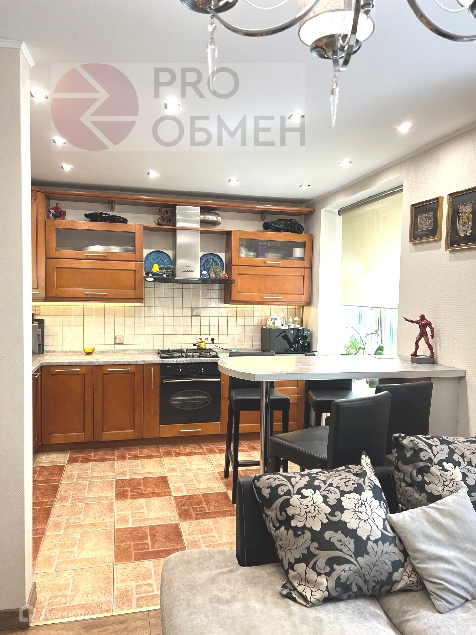 В квартире прекрасная кухня из дерева, качественная сантехника, дорогая бытовая техника.