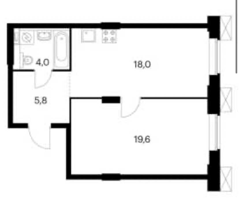 Общая площадь 38.3 м2