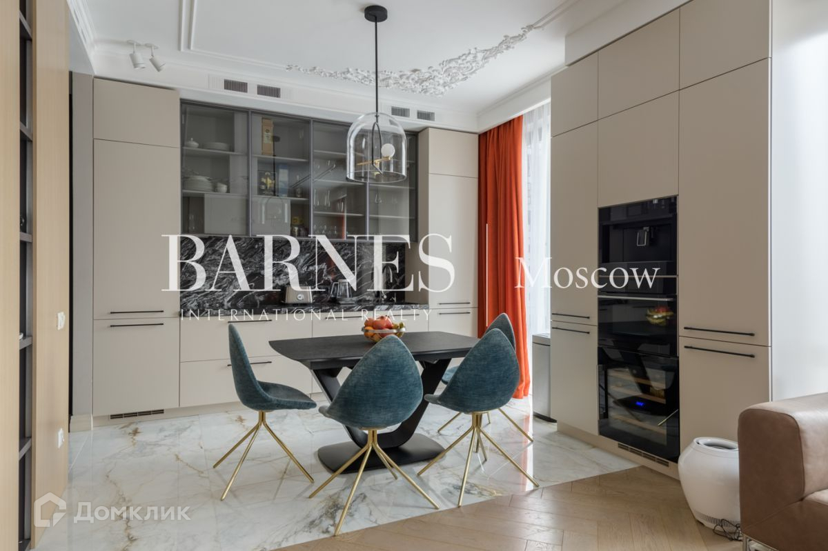 Квартира полностью меблирована (диван в гостиной и кухонный стол Bo concept), итальянская кухня со столешницей из натурального камня укомплектована премиальной шведской техникой Asko (микроволновая печь с функцией духовки, варочная панель, посудомоечная машина, винный шкаф), мойка с измельчителем, холодильник Liebherr. В каждой комнате дизайнерские светильники, в гостиной на потолке ручная лепнина, на полу паркет, сантехника Villeroy&Boch. В квартире установлены индивидуальная система кондиционирования и приточно-вытяжной вентиляции с рекуперацией воздуха, система фильтрации воды, встроенная система аквастоп от протечек, теплые полы. Высота потолка 3.1 м.
