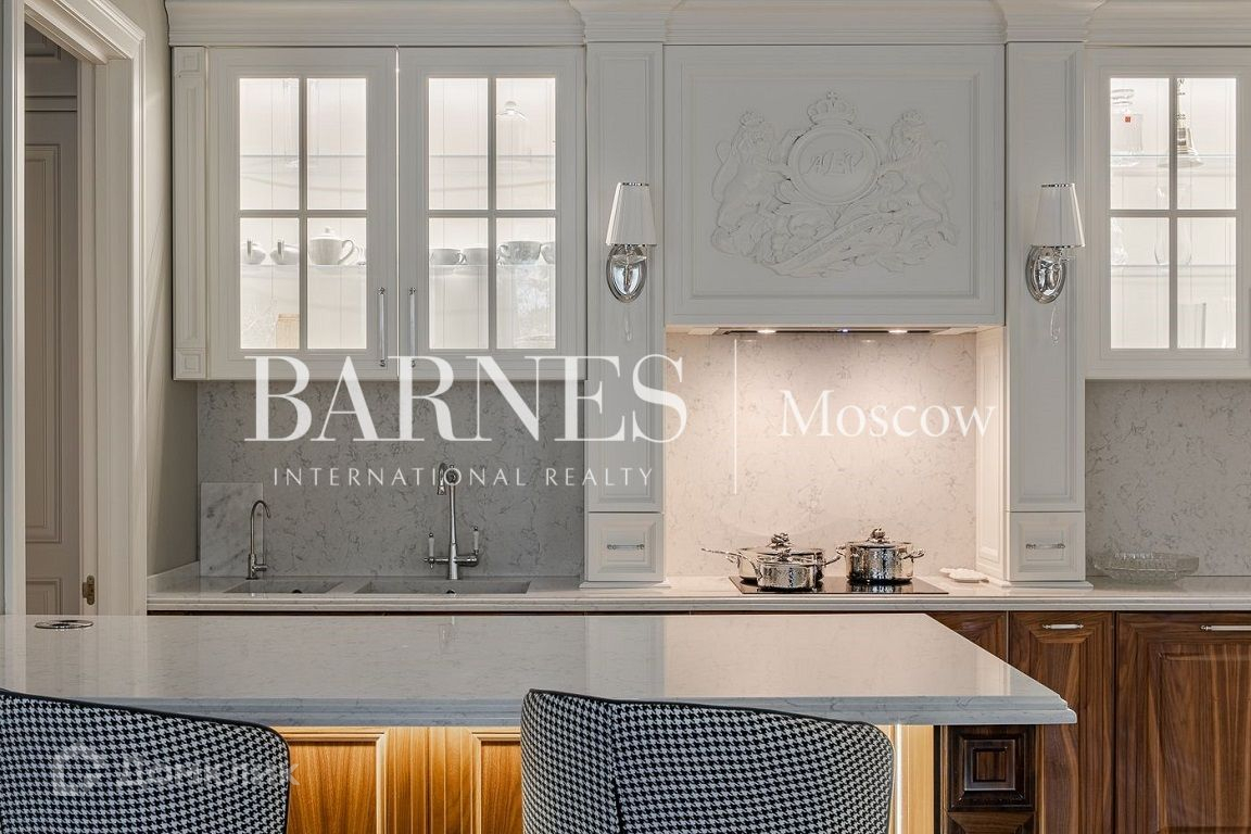 В квартире выполнена дизайнерская отделка по авторскому проекту. Планировочным решением предусмотрены: просторная гостиная с зонами столовой и кухни с натуральным камином и видом на Серебряническую набережную, большая спальня с видом на Тессинский переулок, с прилегающей гардеробной и ванной комнатой с окном, гостевой санузел с душем, гардеробная и постирочная комнаты.