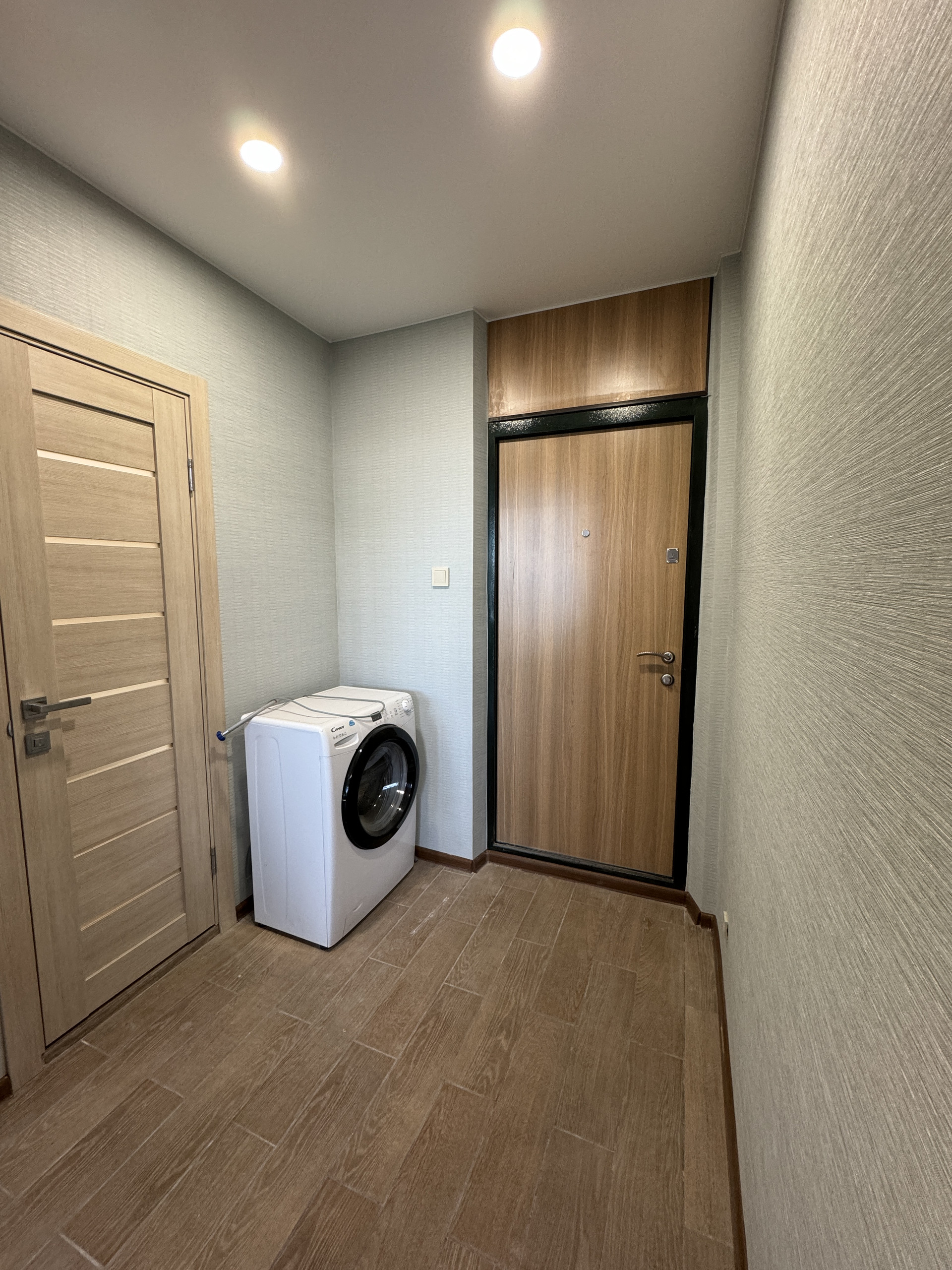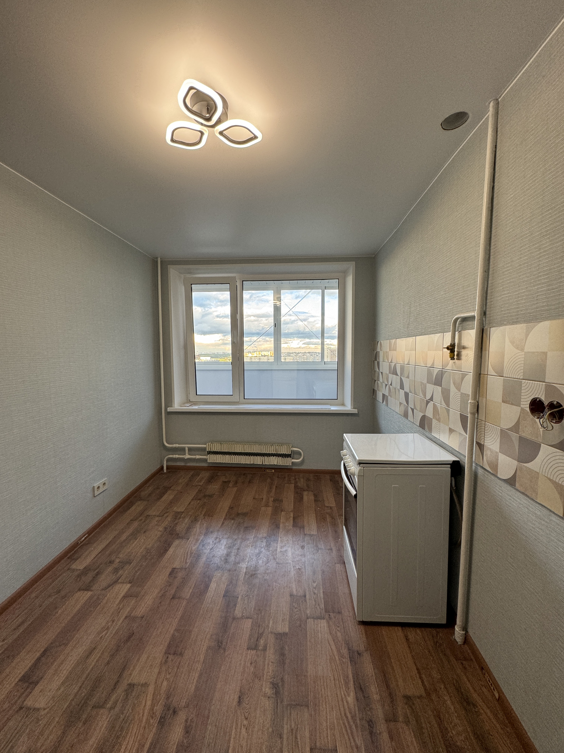 Сделан евро ремонт в  квартире, в квартире после ремонта не жили, все новое от сантехники, входной двери до стеклопакетов, дверей и розеток с выключателями. Натяжные потолки со встроенным освещением.