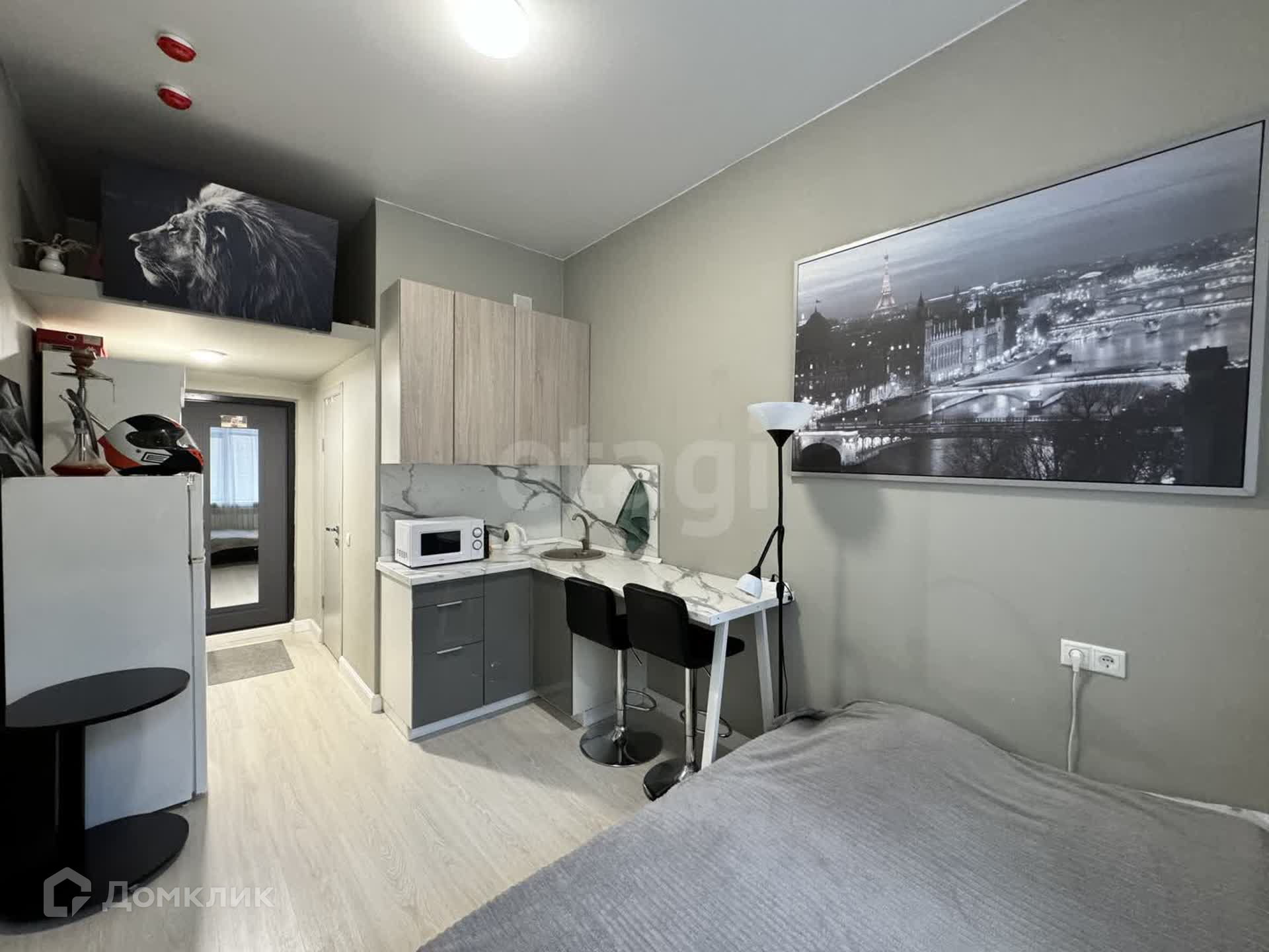 Уютная теплая студия площадью 14,9 кв.м. + площадь антресольного этажа 6 м2. В апартаментах на втором этаже можно оборудовать спальное место. В студии новый современный ремонт, мебель и техника (холодильник, телевизор, стиральная машина, посуда), все, что необходимо для жизни. Туалет совмещенный с душем.