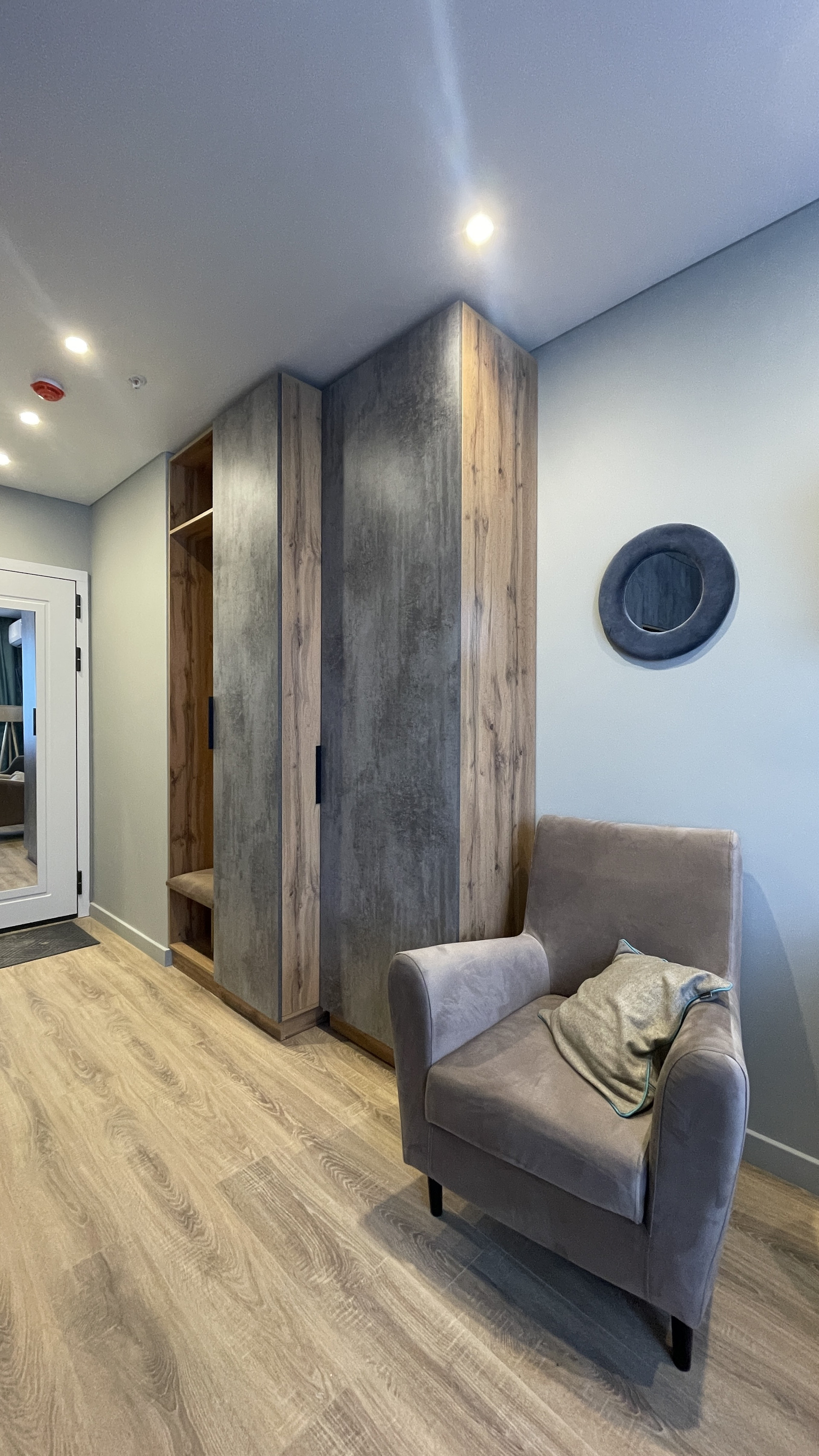 Евроремонт с выводом под кухонную зону, отделкой, готовым санузлом и сантехникой (раковина, унитаз, душ со стеклянной ширмой). Полная новая отделка мест общего пользования: коридоры и холлы. В здании комплекса заменены коммуникации (канализация, электрика, водопровод, отопление, вентиляция). Установлены сплит-системы для кондиционирования воздуха, стеклопакеты и вентиляция.