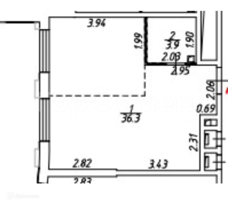 Общая площадь 40.2 м2