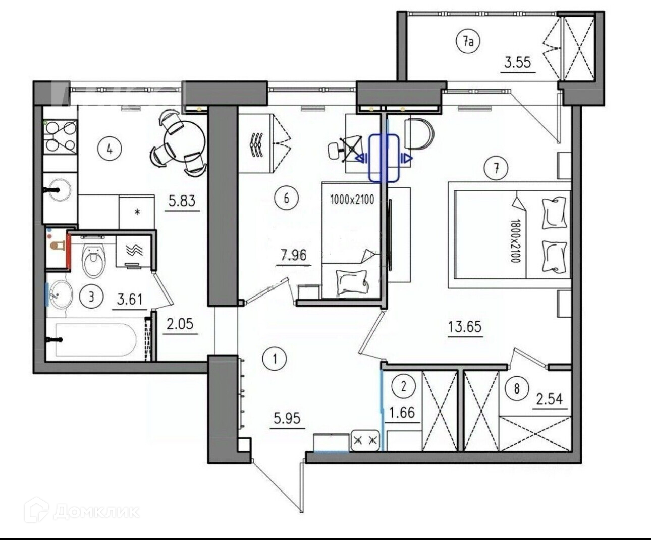 - Общая площадь 44,3 м2
