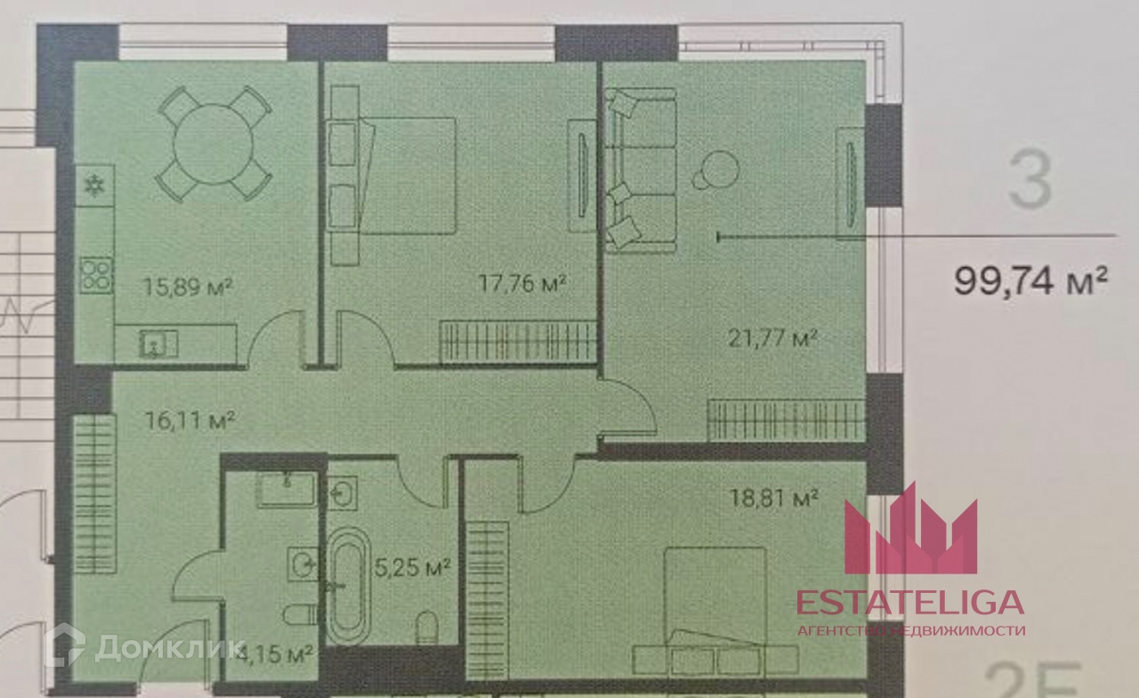Количество комнат 3