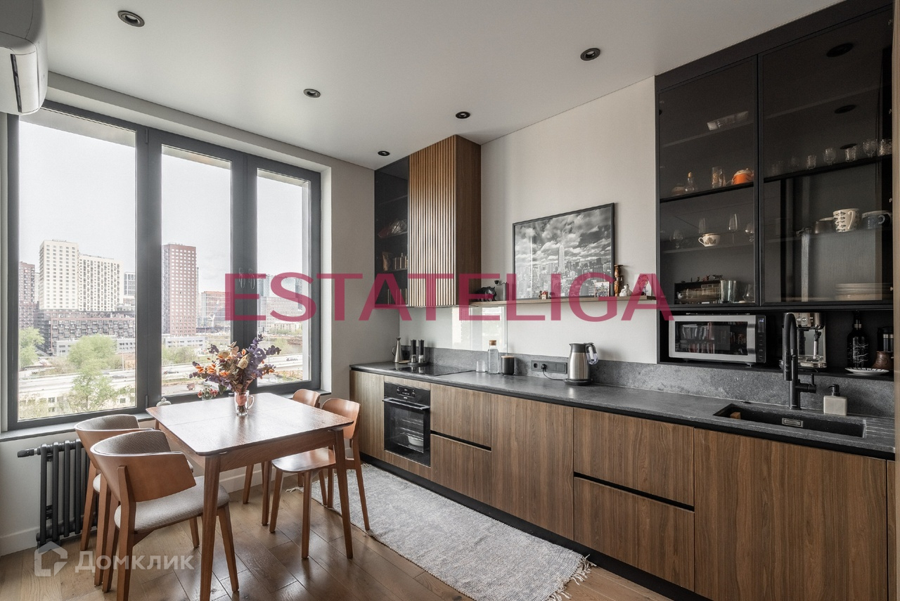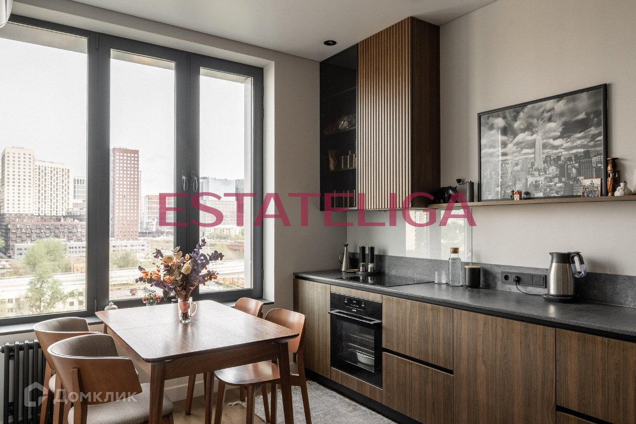 Планировка этой квартиры включает просторную кухню, с максимально продуманными зонами хранения и сценариями освещения! Вечером, во время ужина, можно наблюдать из окна невероятные закаты, отражающиеся в Москва-реке, и вечерние огни самого востребованного сейчас района Москвы - Большого сити!