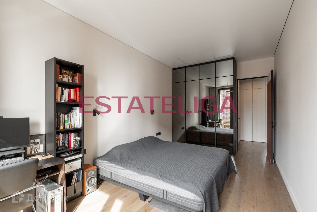 Спальня расположена на другой стороне квартиры, вдали от кухни, что позволит долго наслаждаться сном)) она просторная, в ней полноценно помещается рабочая зона и кровать, а также эксклюзивный шкаф, с зеркальными дверцами и интересной подстановкой, сделанный на заказ.