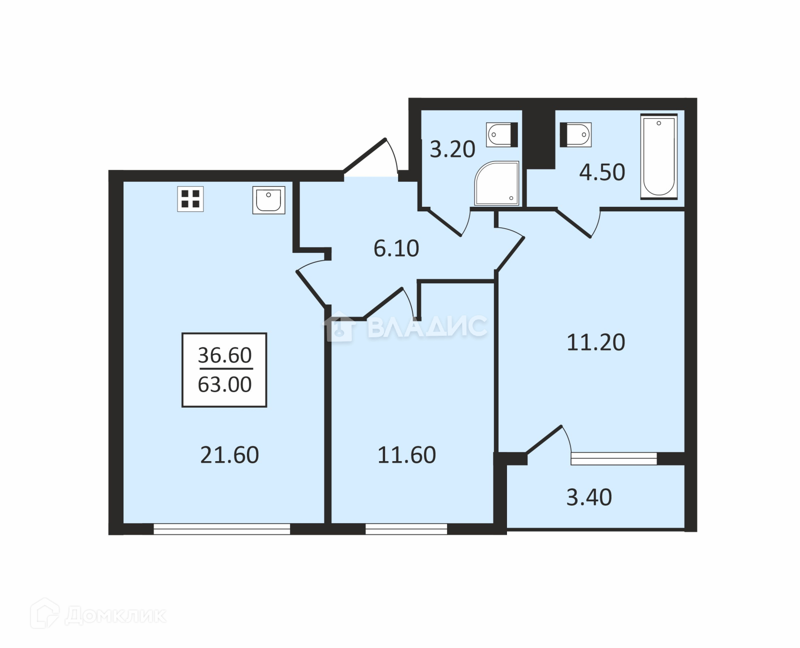 Общая площадь 63 м2