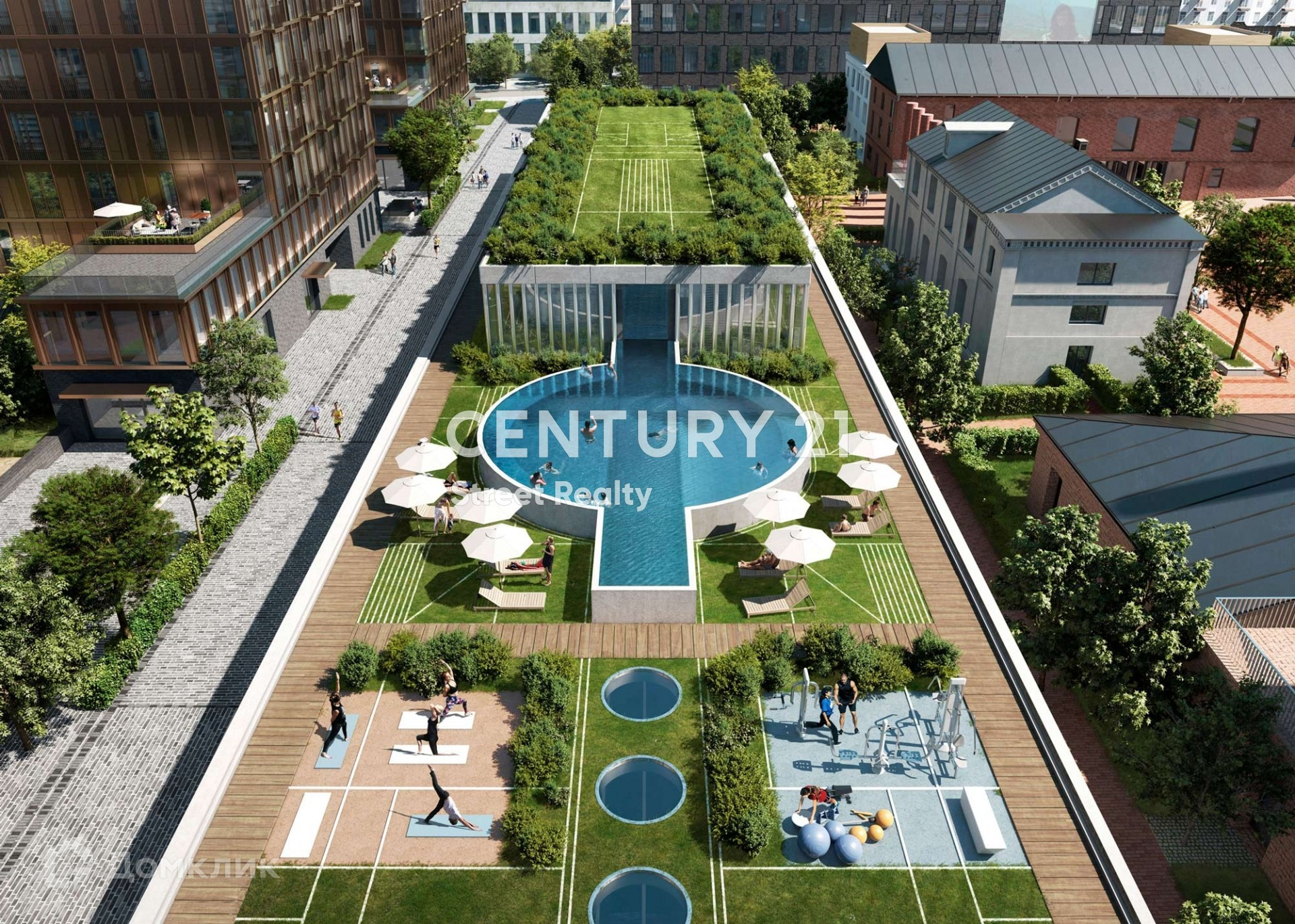 Визуально квартал разделен на две части: верхний город с новыми высотными жилыми домами и нижний город с общественным пространством для инфраструктуры, где будет располагаться новый социокультурный кластер площадью около 10 000 кв. м. Верхний город состоит из восьми жилых домов: семь 21-этажных башен и одно здание высотой 15 этажей. В восьми домах расположены всего 618 квартир. На каждом этаже 3-4 квартиры.