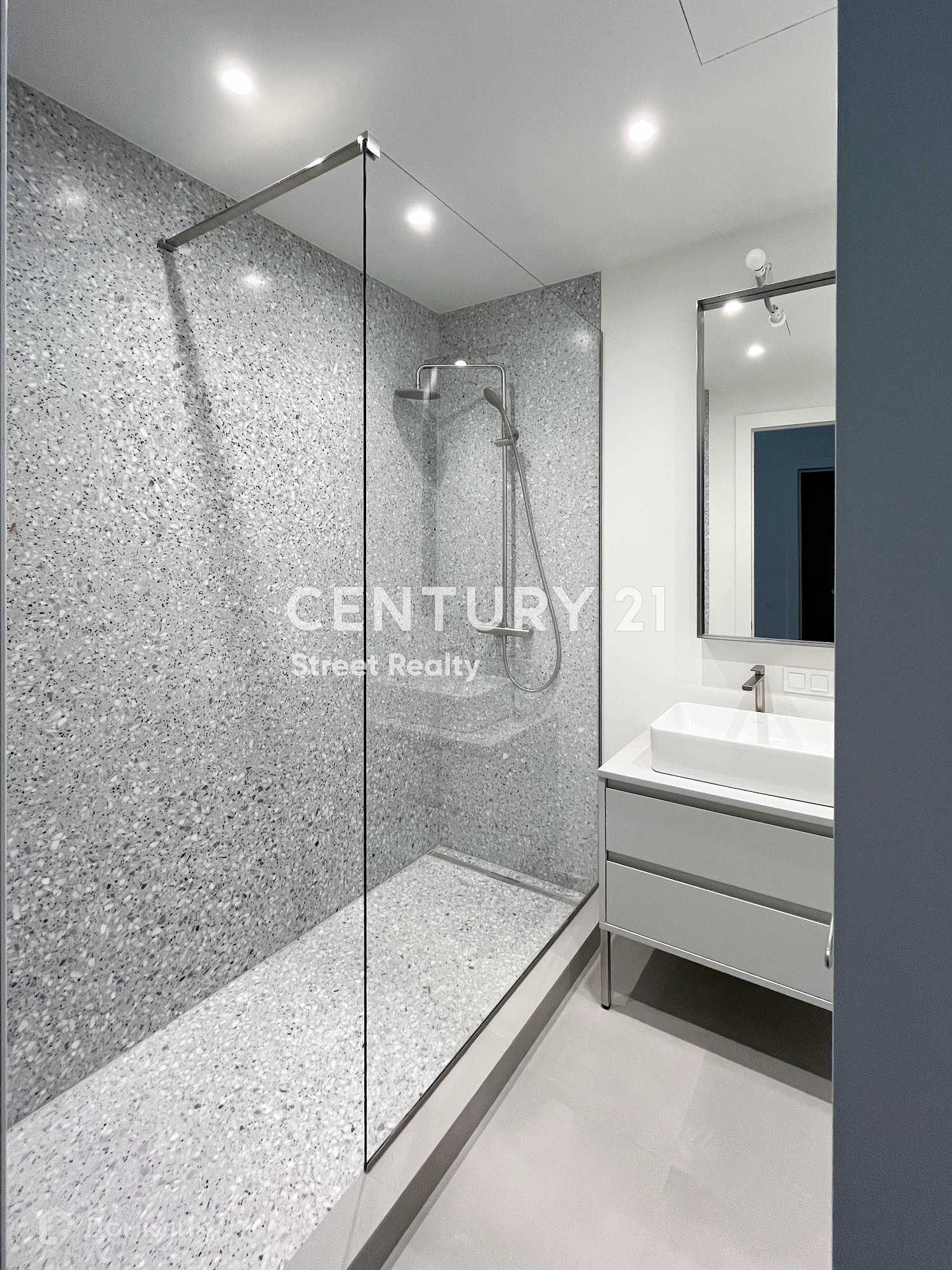 Отделка квартиры выполнена премиальными отделочными материалами. Дизайн интерьера от итальянской студии Molteni Group. На полу деревянная паркетная доска с системой "тёплый пол". Санузел облицован керамогранитом и бетонной плиткой "Терраццо".