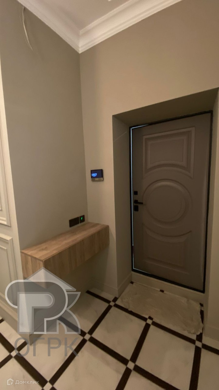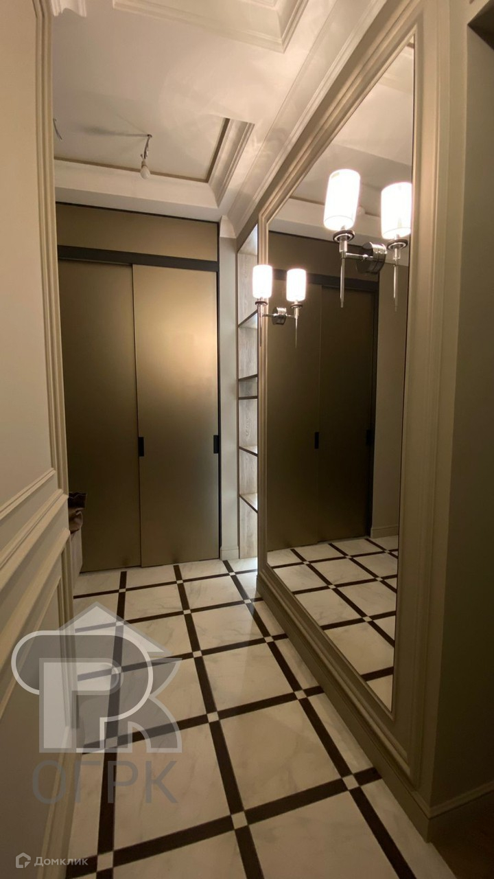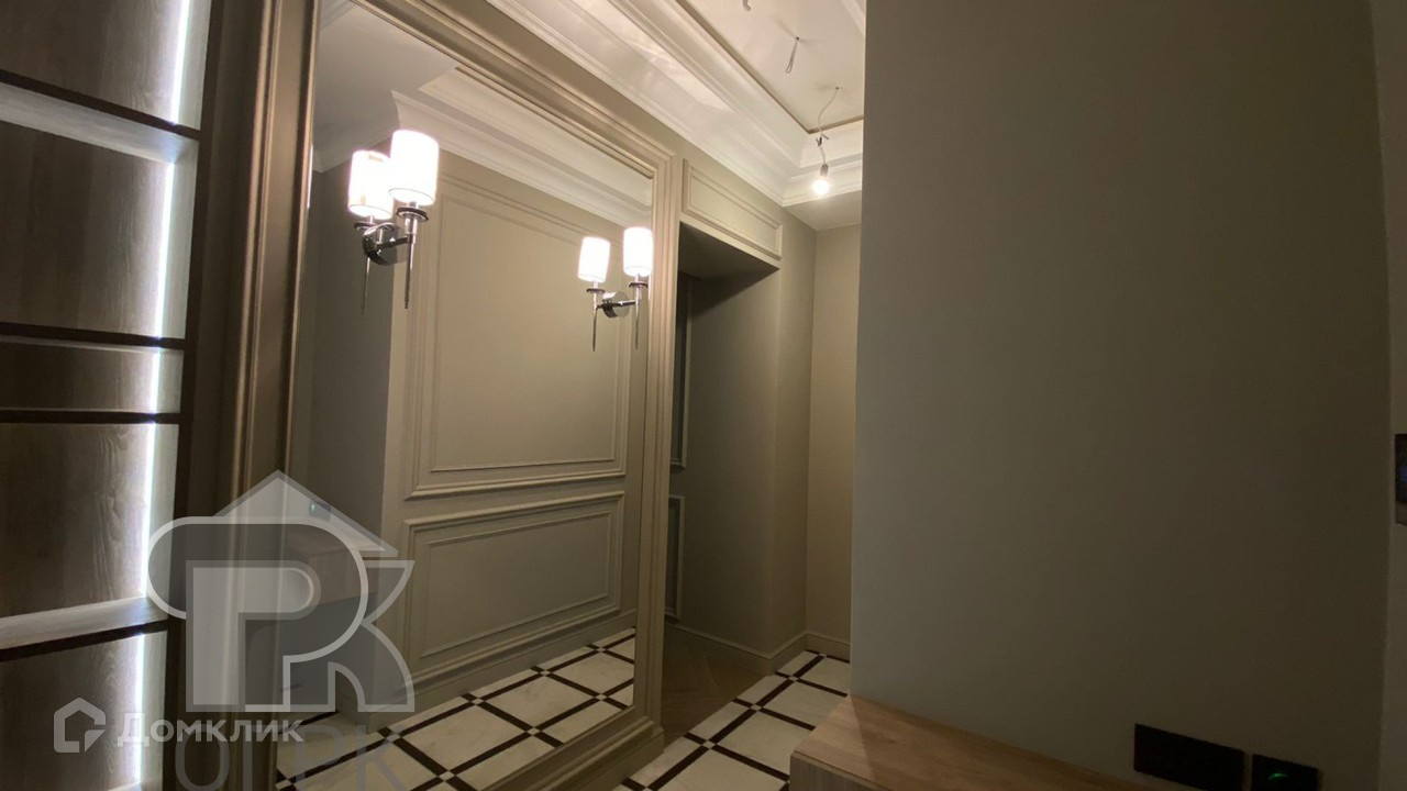 Установлена кухня с техникой, в санузле также установлено все необходимое, есть кондиционеры и очистители воздуха, регулируемая система отопления, теплые полы. Гардеробная в спальне и большая ниша-шкаф в коридоре.