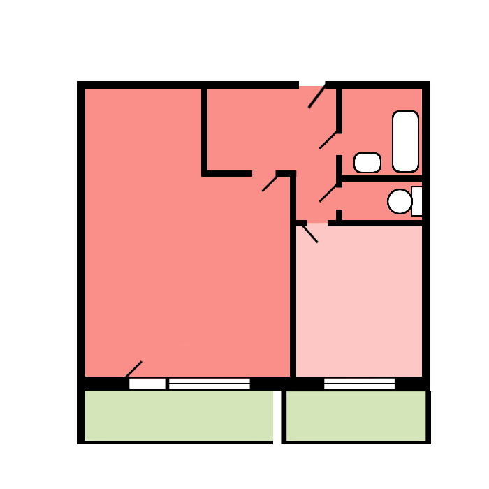Общая полезная площадь квартиры 39,7 кв.м. (без учета лоджии). Просторная, светлая кухня - 9 кв.м., правильной формы, что удобно при расстановки мебели. Большая комната 21 кв.м. с альковом, в котором можно сделать отдельно спальную зону или гардероб.