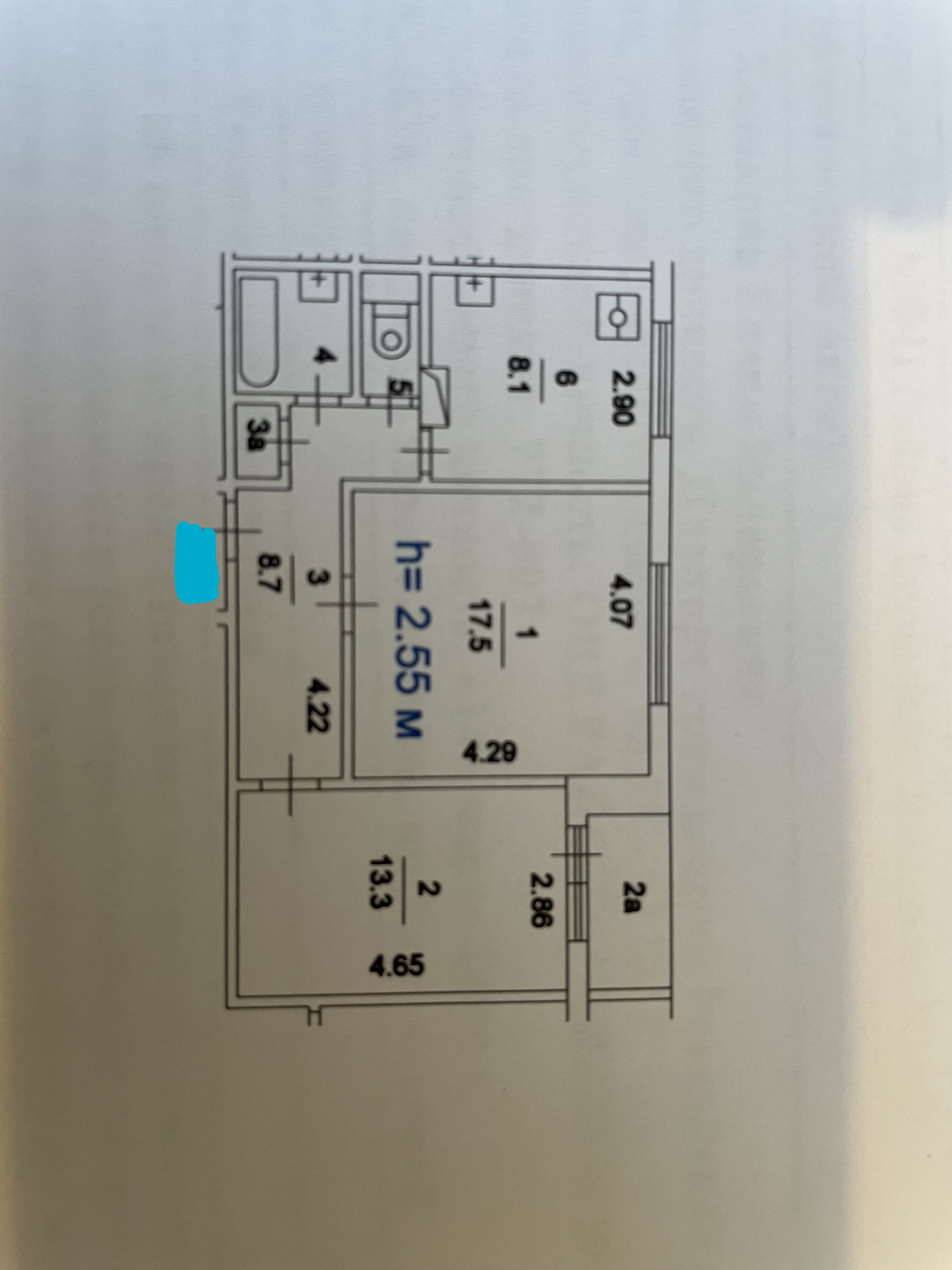 Общая площадь 52.2 м2