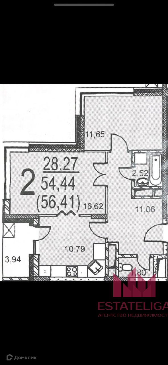 Общая площадь 56 м2