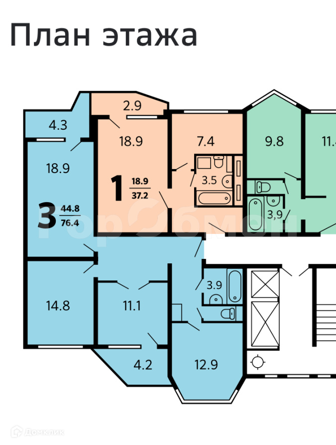 Общая площадь 37.5 м2