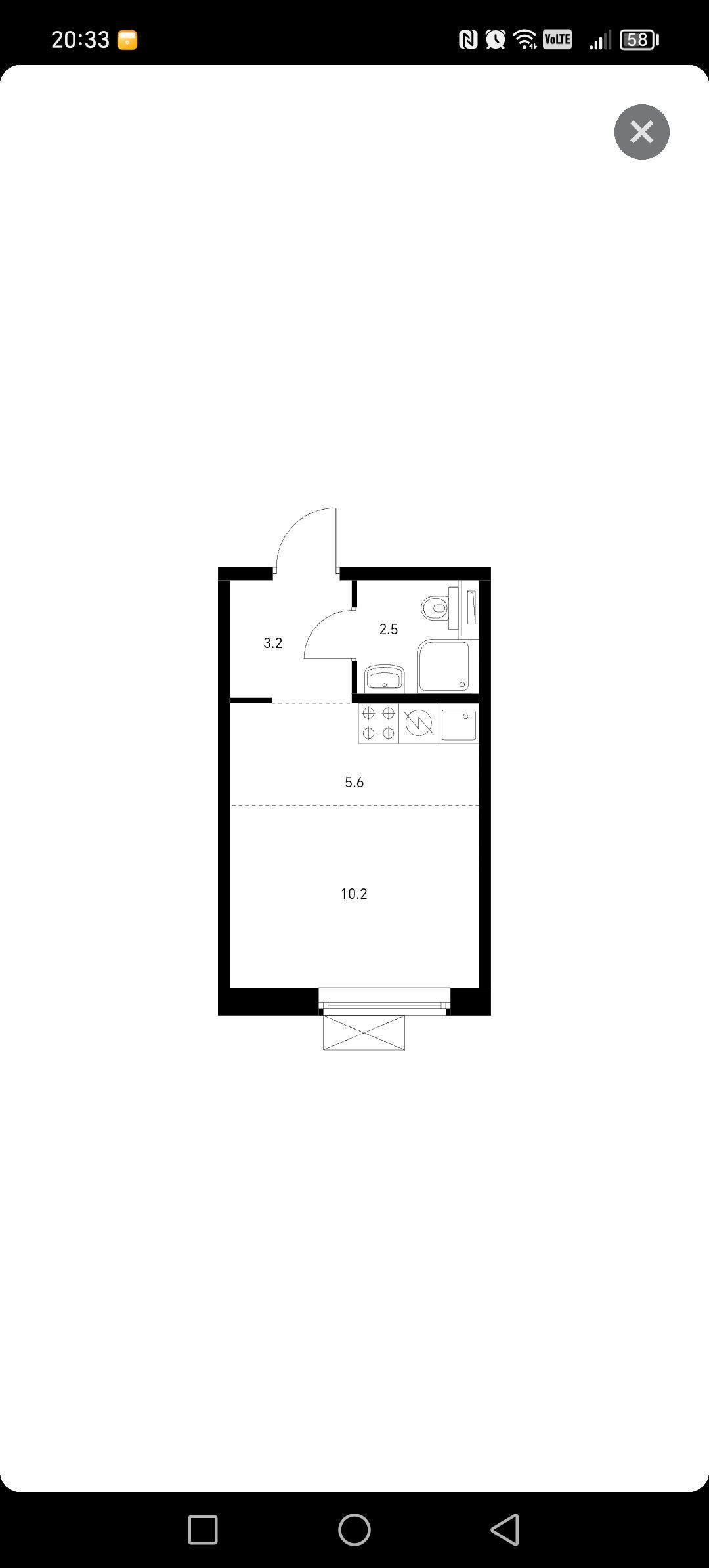 Жилая площадь 10.2 м2
