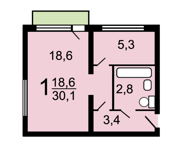 Общая площадь 30 м2