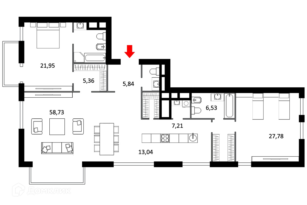 Жилая площадь 108.46 м2