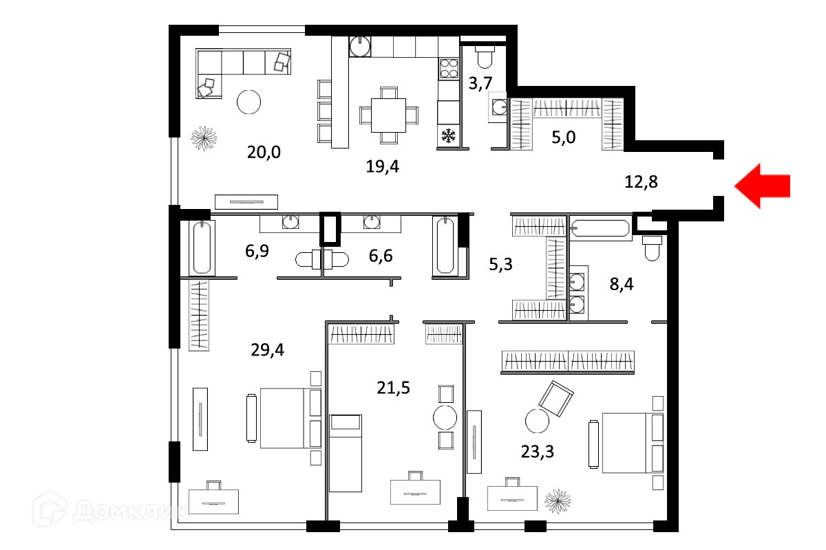 Жилая площадь 94.2 м2
