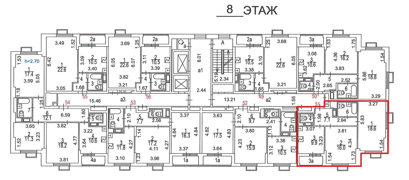 Высота потолков 2.7 м