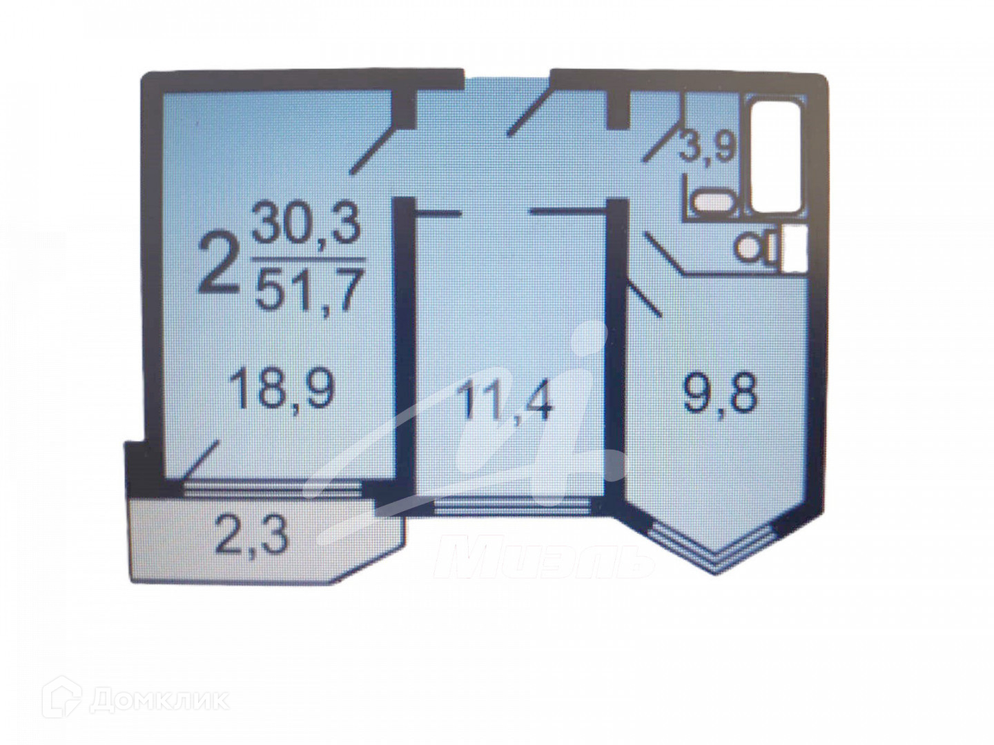 Общая площадь 51.6 м2