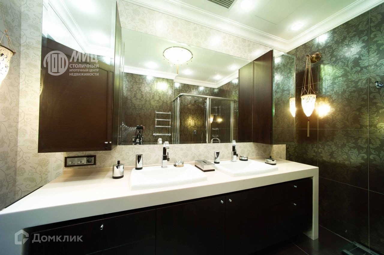 Отделка выполнена с использованием качественных материалов. Квартира меблирована, оборудована современной бытовой техникой и готова к проживанию. Функциональная планировка включает в себя кухню, гостиную, столовую, 3 спальни, каждая со своим санузлом, 2 гардеробные, кабинет, постирочную, гостевой санузел, лоджию.