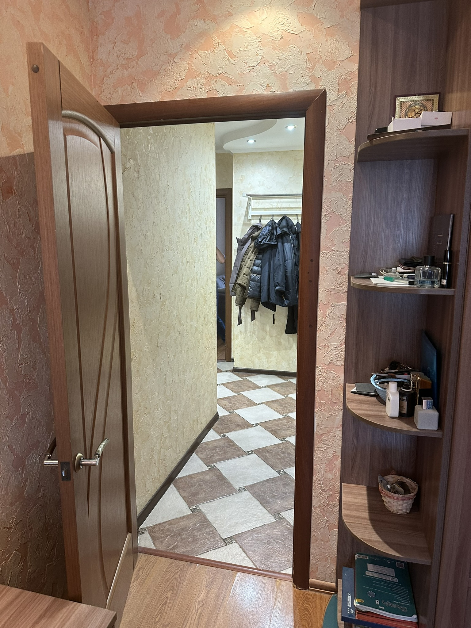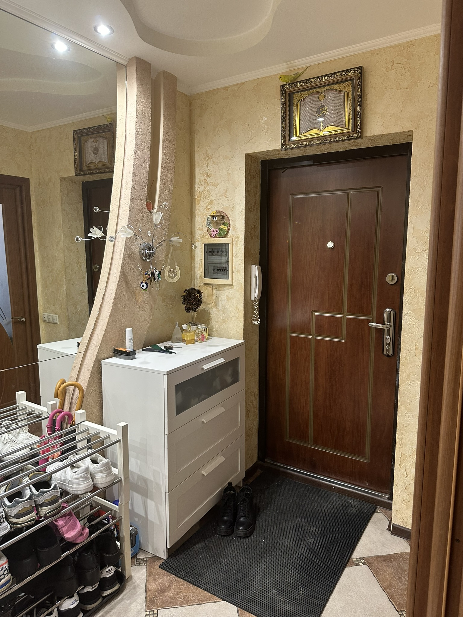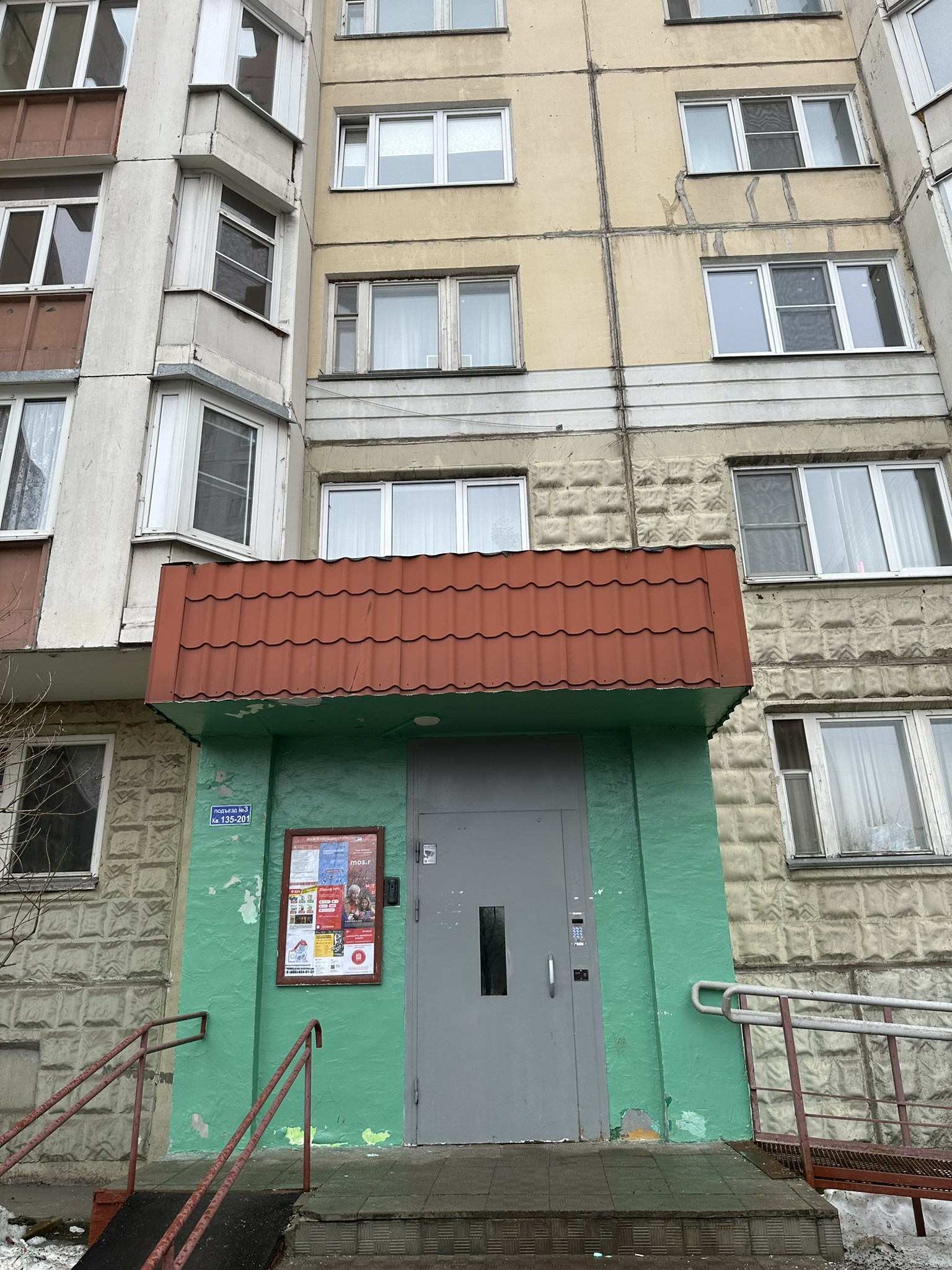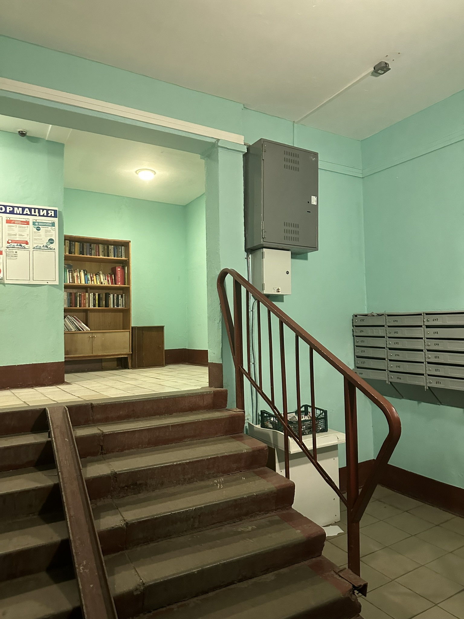 Большой тамбур на 4 квартиры с соседями, стоит свой хозяйственный стеллаж.