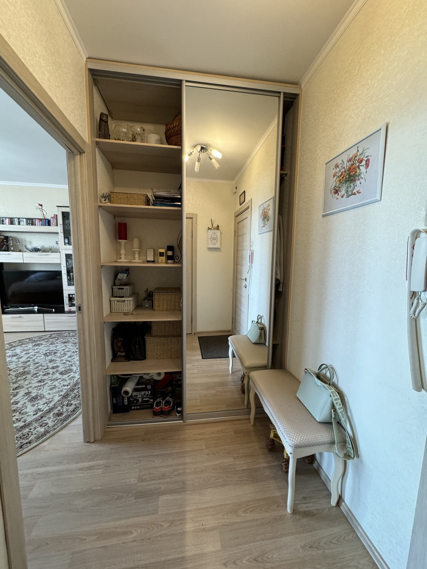 Кухня, встроенные шкафы, гардеробная, стенка в зале остается.