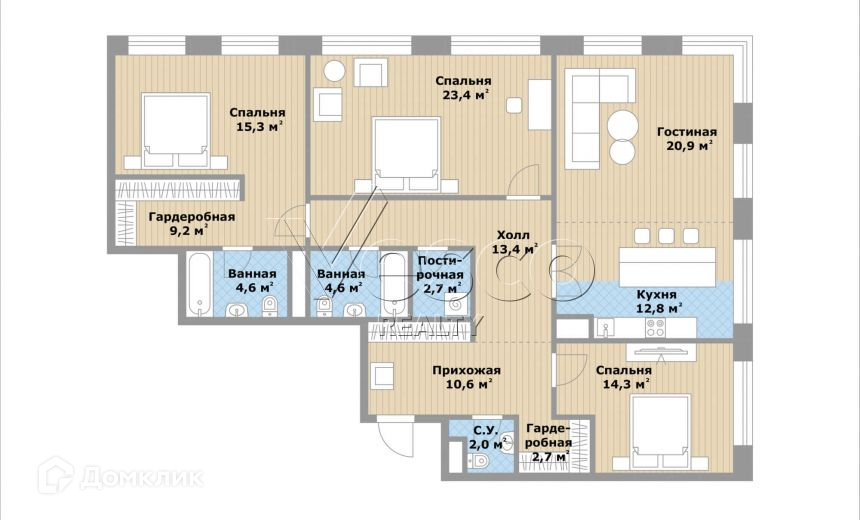 Общая площадь 136.9 м2