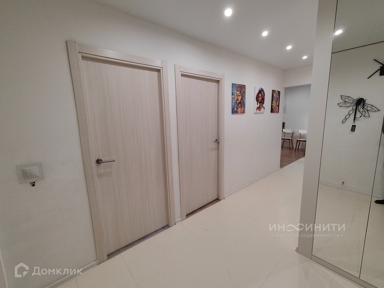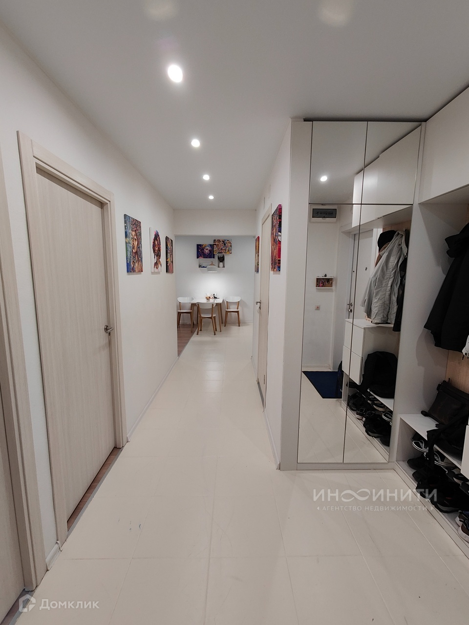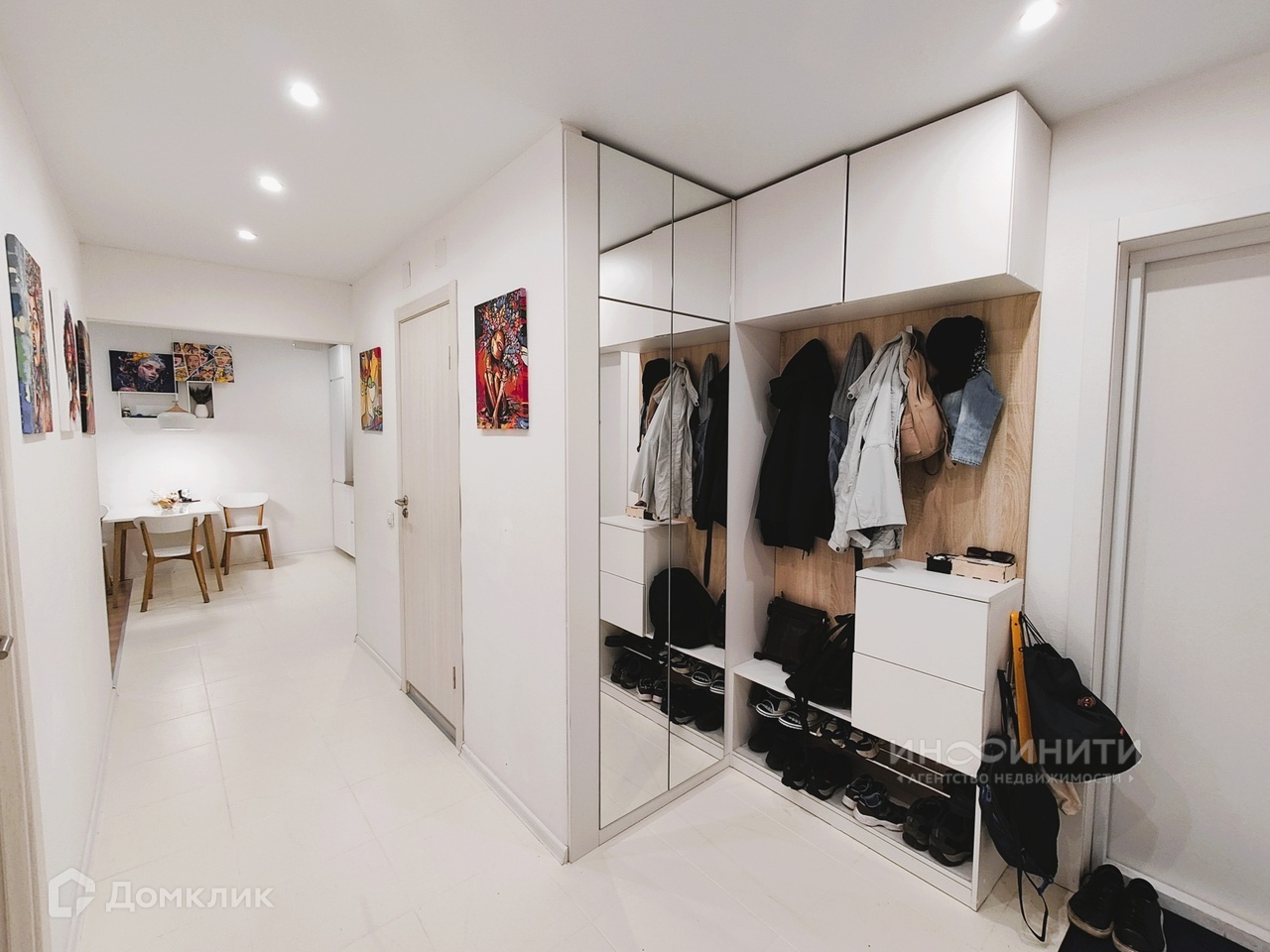 - В прихожей встроен шкаф с зеркальными дверьми, вешалка для верхней одежды и обувная полка.