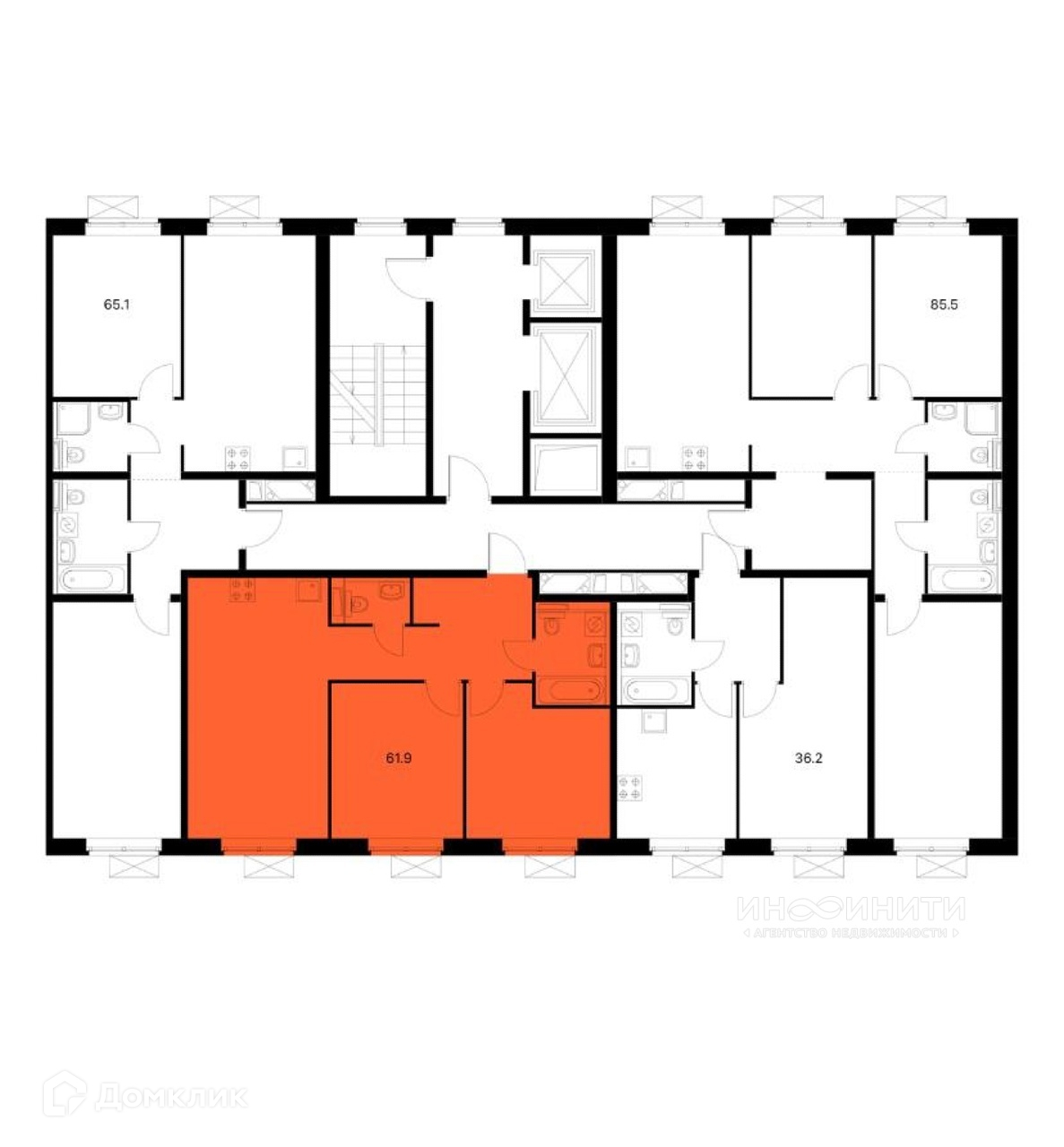 На этаже два лифта: легковой и грузовой.