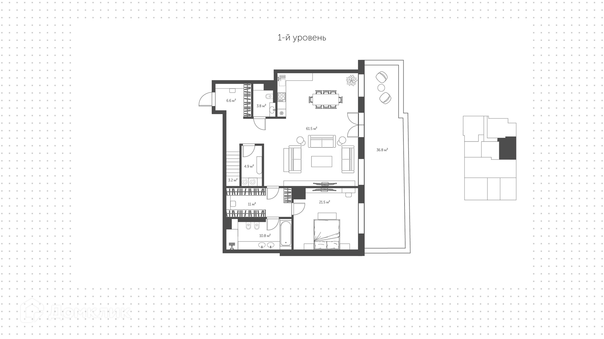 ID 257 108. Двухуровневая квартира с 4-мя спальнями и выходом на патио в клубном доме делюкс-класса «Обыденский 1». Квартира без отделки общей площадью 242 м² расположена на 1-м этаже. Свободная планировка позволяет организовать пространство по собственному усмотрению. В проекте предусмотрен просторный патио, на котором можно установить садовую мебель и организовать отдых на свежем воздухе.