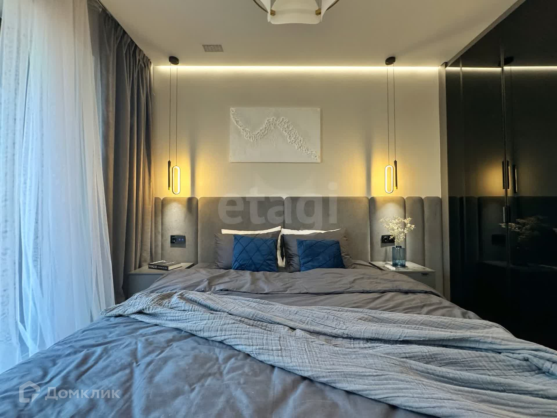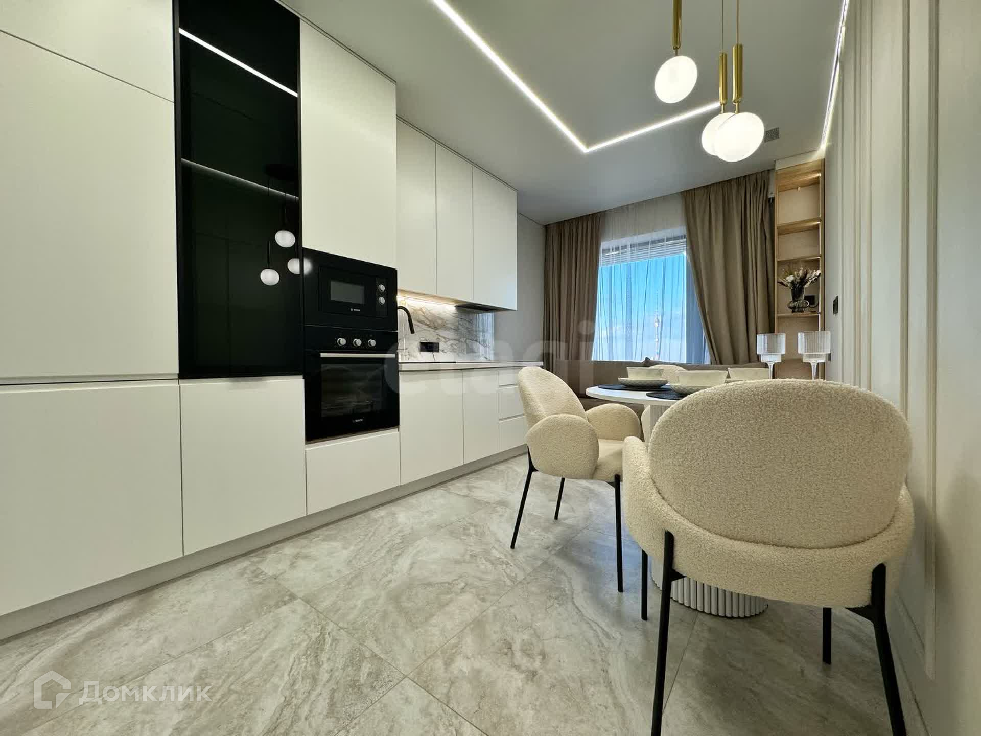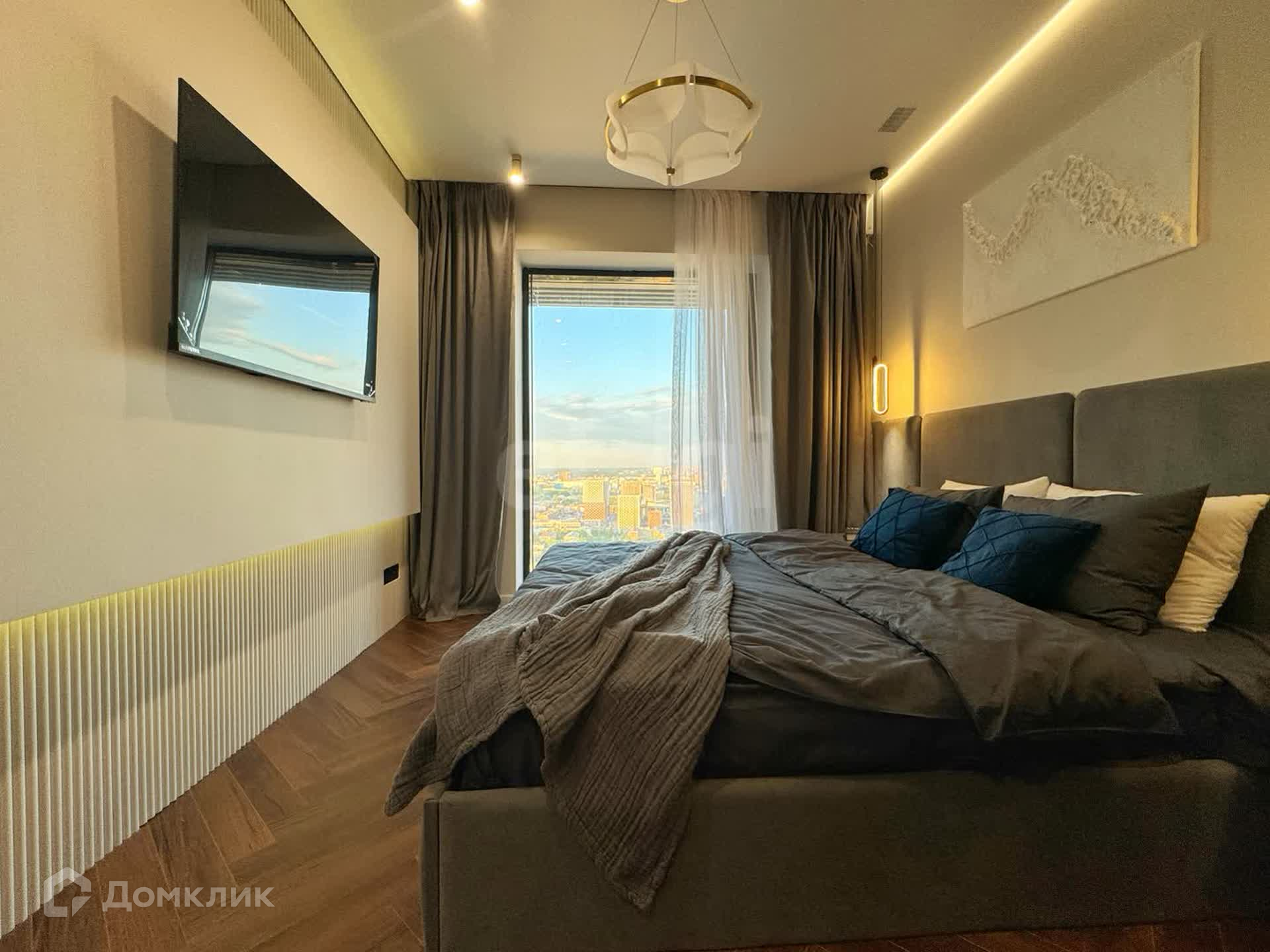 Евро-3шка со светлым ремонтом и панорамным остеклением с системой "умный дом" (управление всеми электроприборами с любой точки земного шара, при наличии интернета конечно же). Сделана шумоизоляция стен и пола, кондиционирование, система притока воздуха по зонам, радиаторы, межкомнатные двери со скрытой фурнитурой 2,20 м в высоту.
