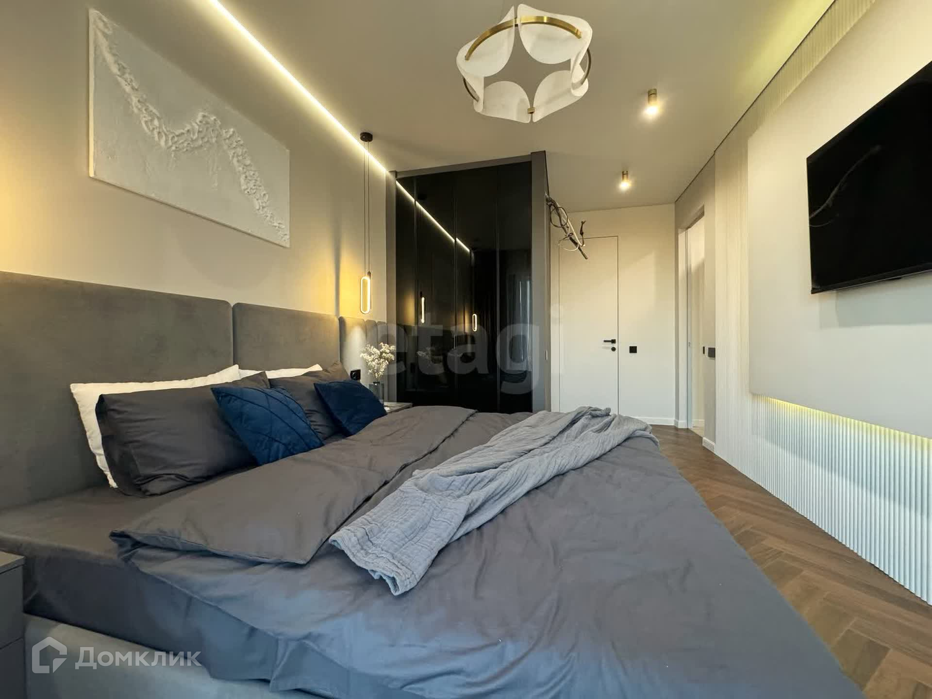 В квартире установлена акустическая система с возможностью установки разной музыки или контента по комнатам и санузлам.