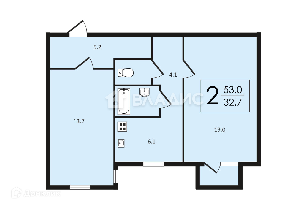 Общая площадь 56 м2