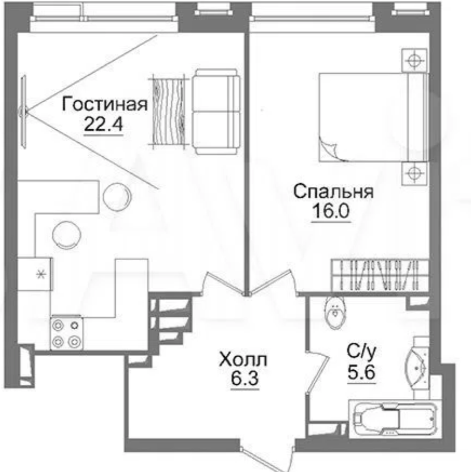 Общая площадь 52 м2