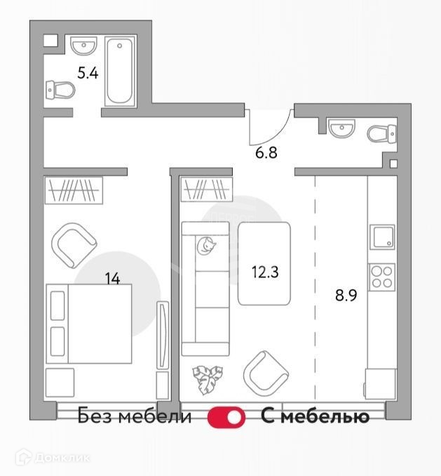 Жилая площадь 26.3 м2