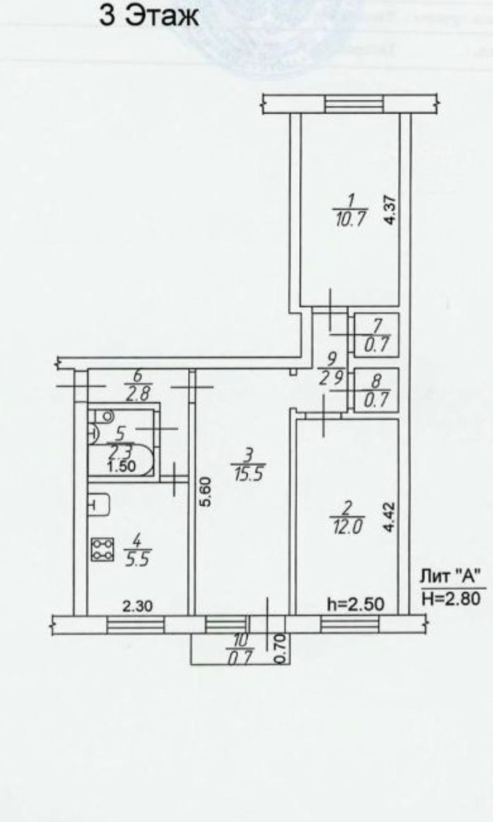 Высота потолков 2.5 м
