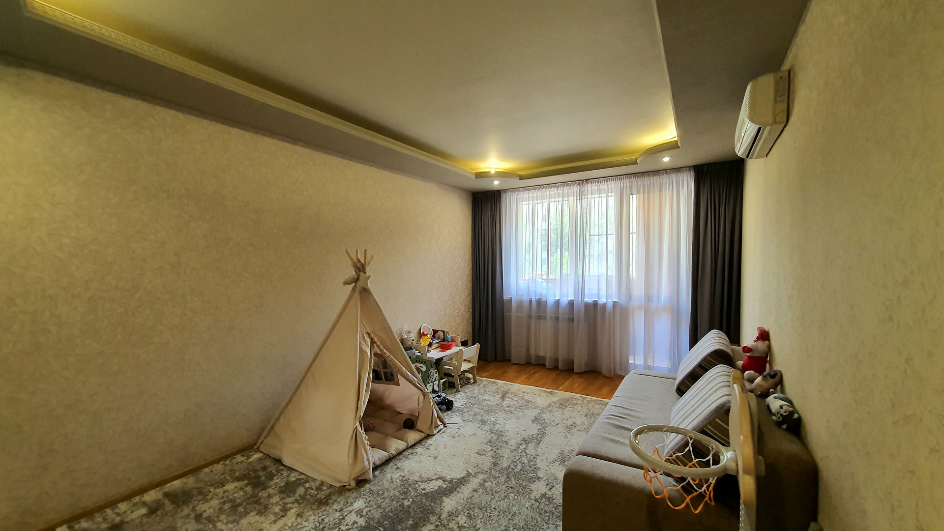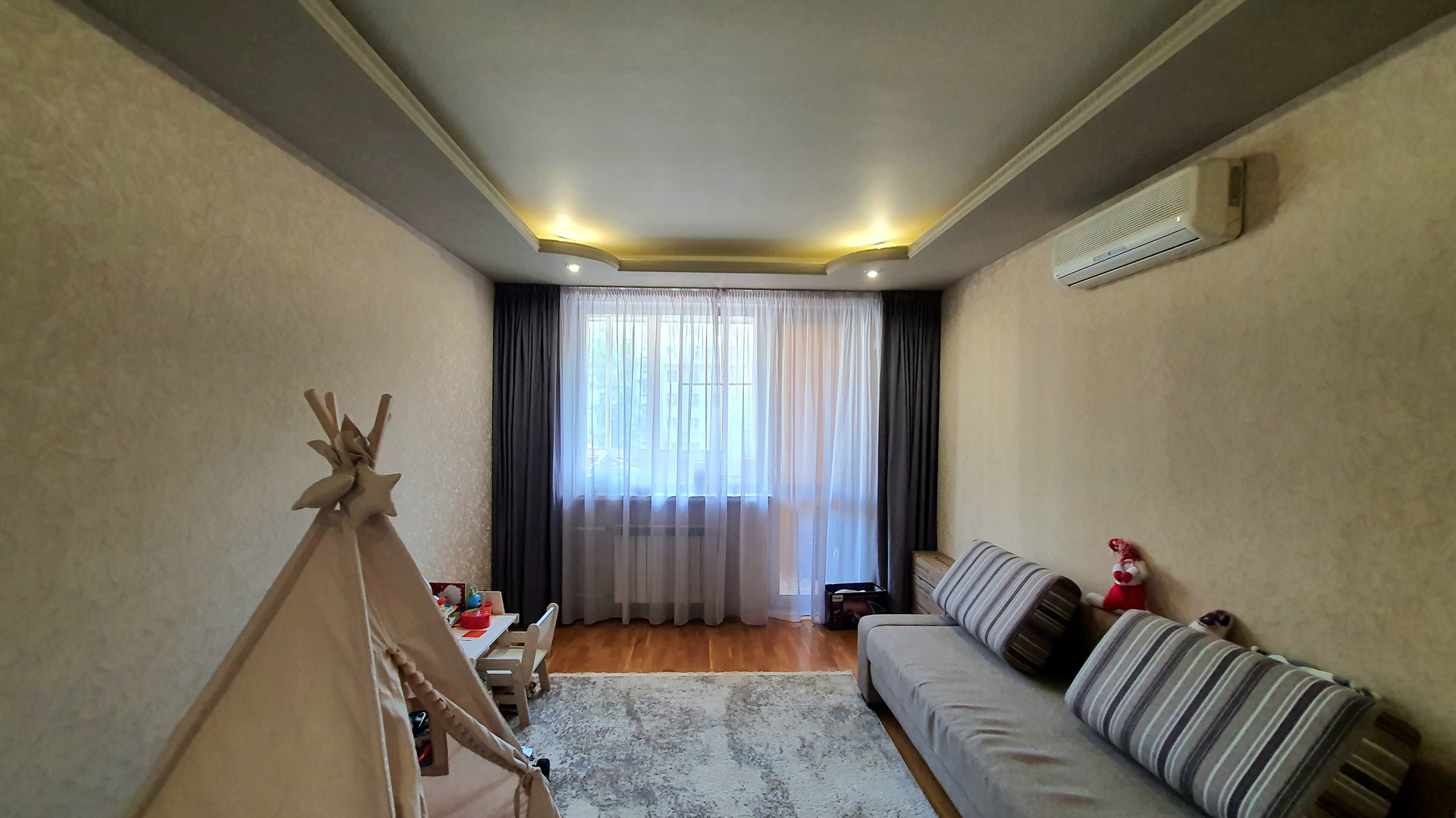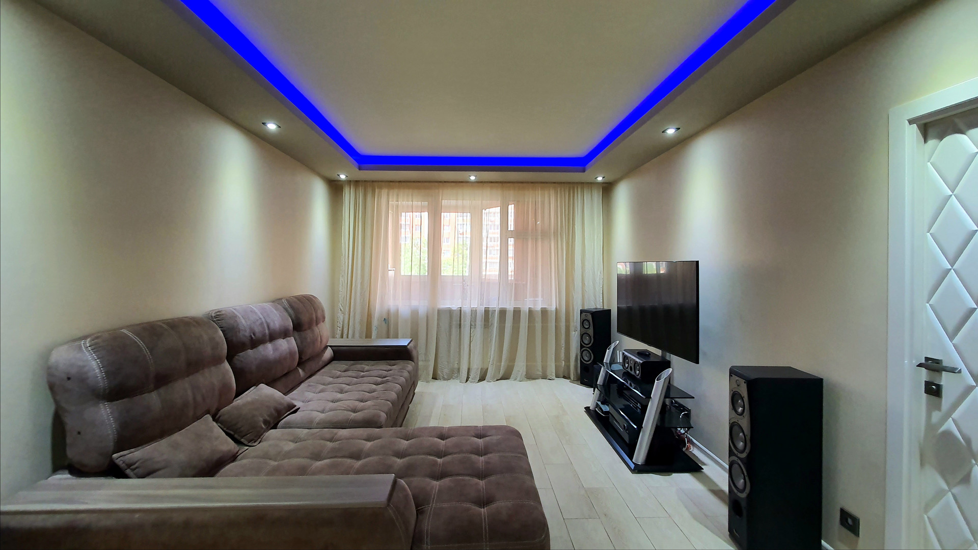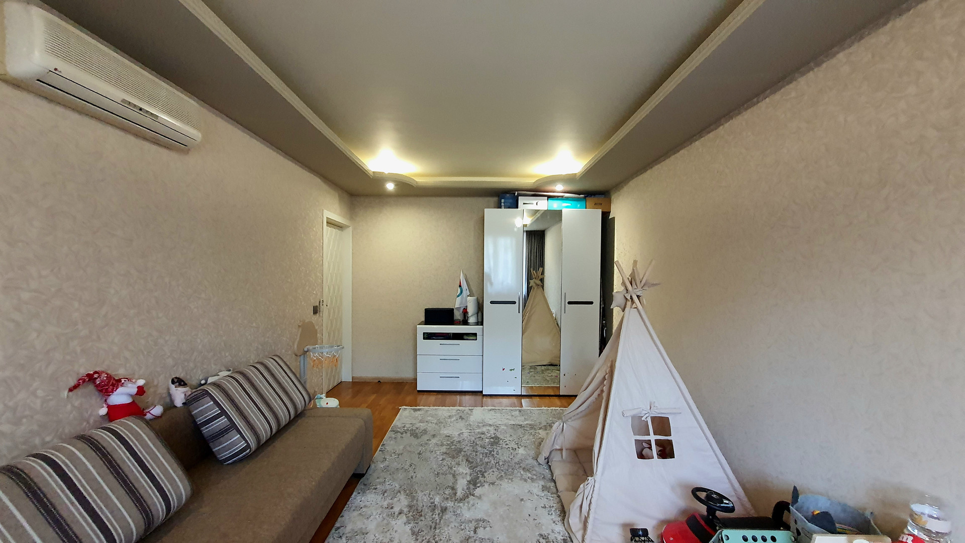 •    объединили комнату с коридором – теперь это функциональная гостиная для совместного просмотра семейного кино и проведения времени вместе;