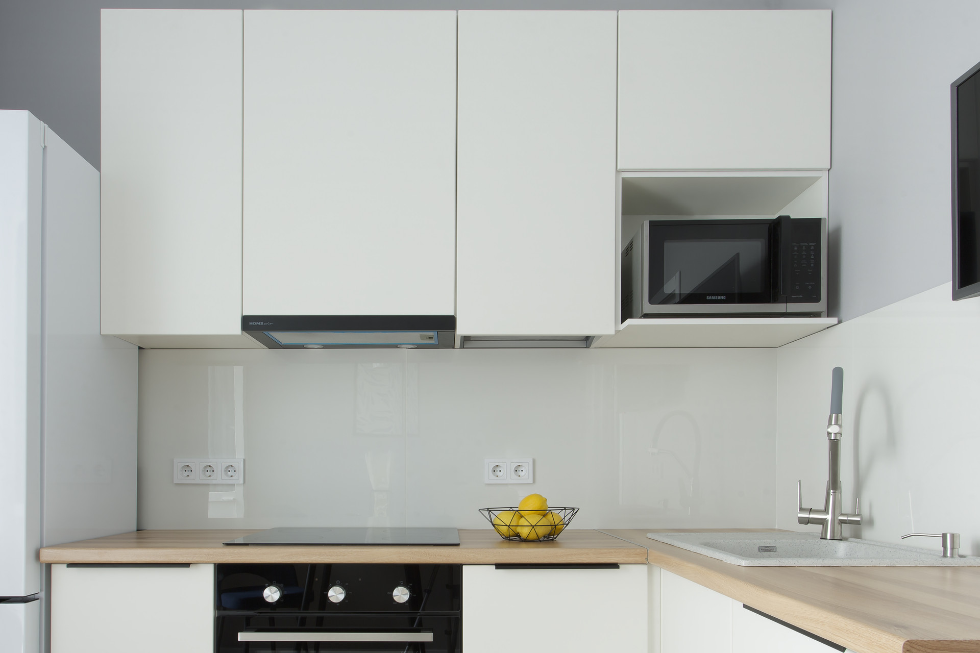 Вместительная кухня оборудована всей необходимой техникой (двухметровый холодильник, посудомоечная машина, микроволновка, варочная панель, духовой шкаф и вытяжка). Вся мебель и техника – новые и остаются в подарок покупателю!