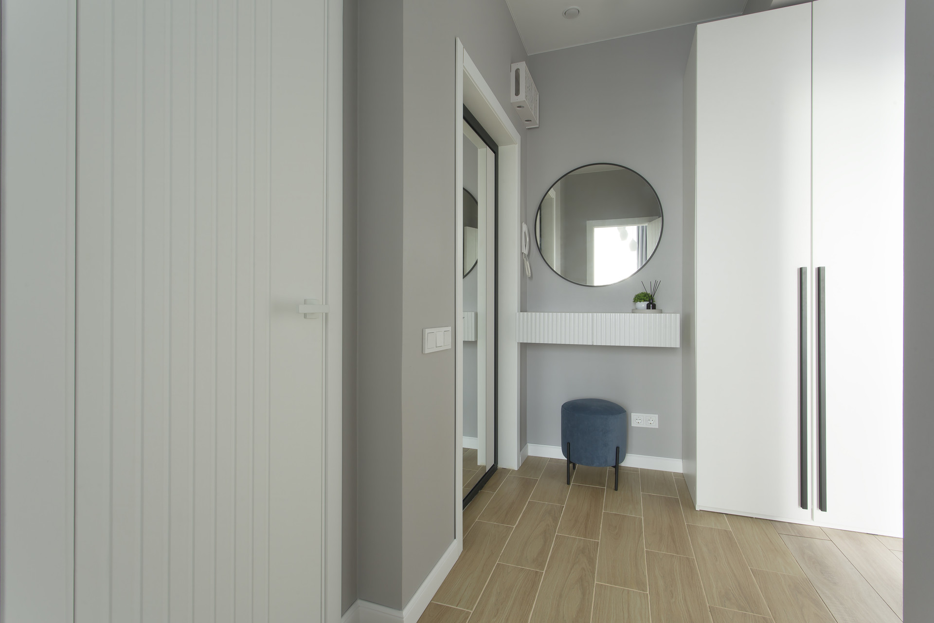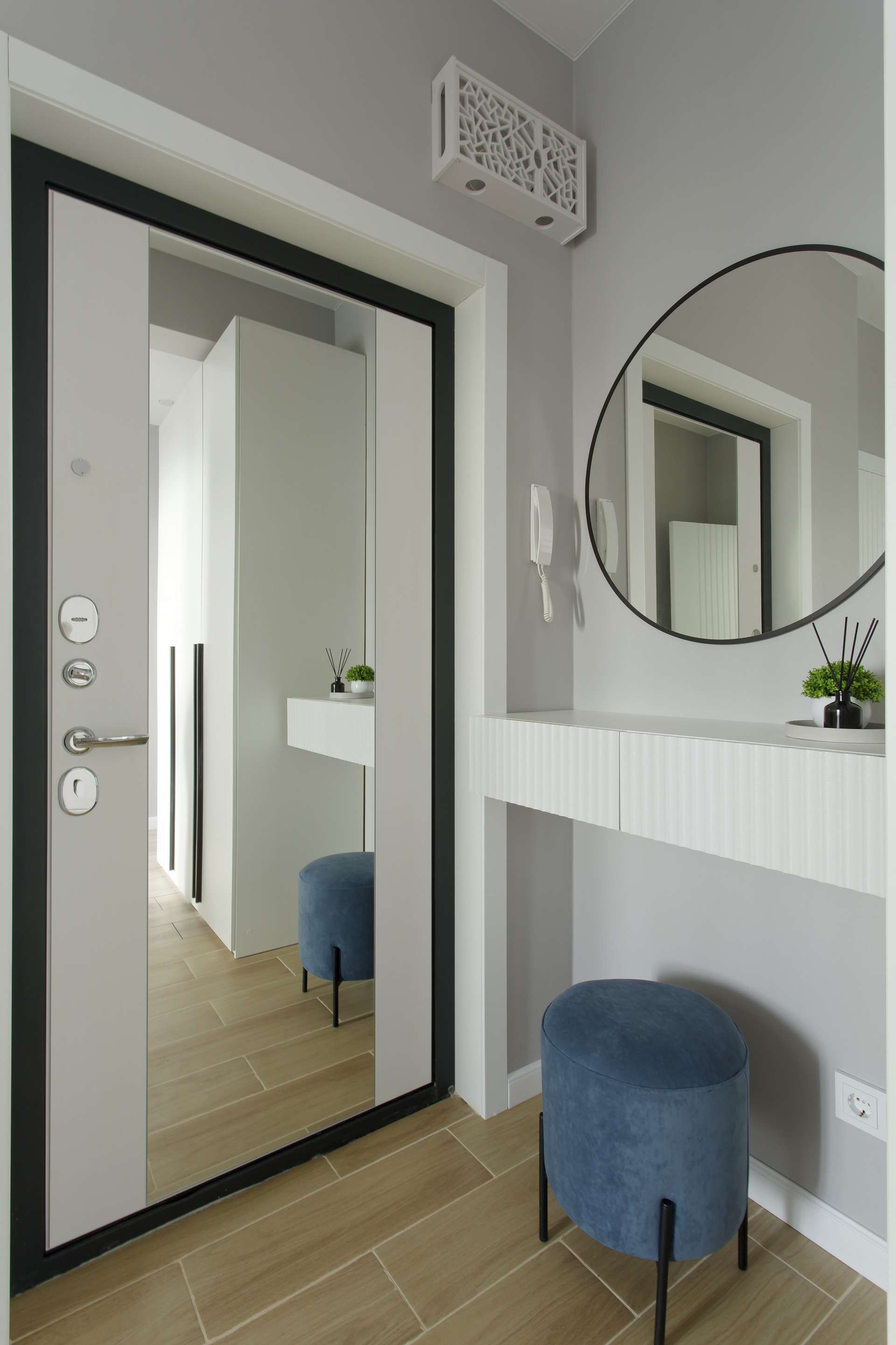 В квартире был произведен качественный капитальный ремонт, функциональные зоны грамотно спланированы, предусмотрено большое количество мест хранения.